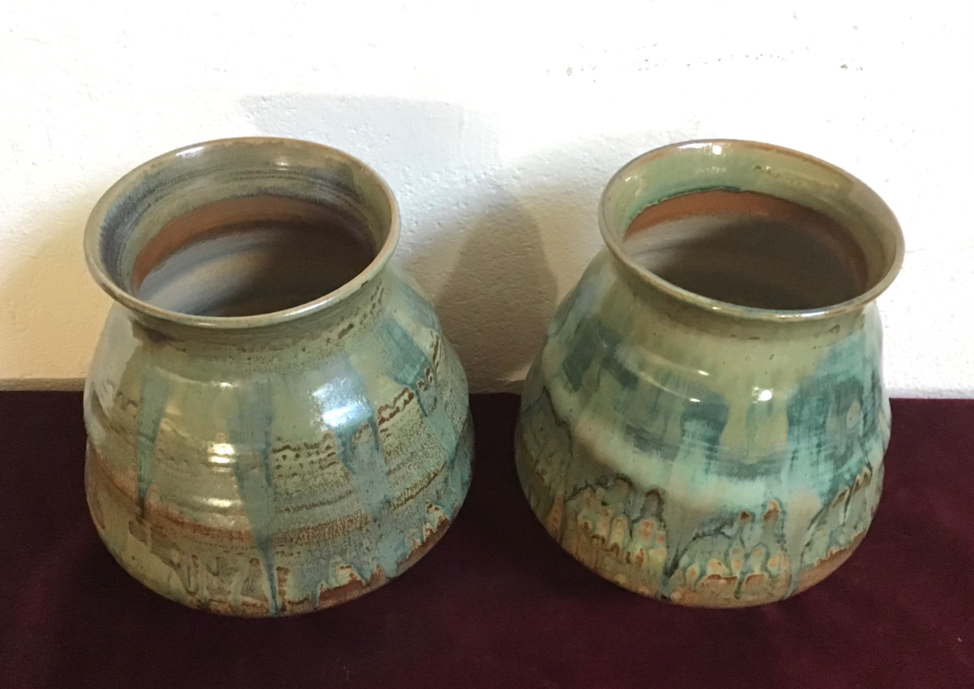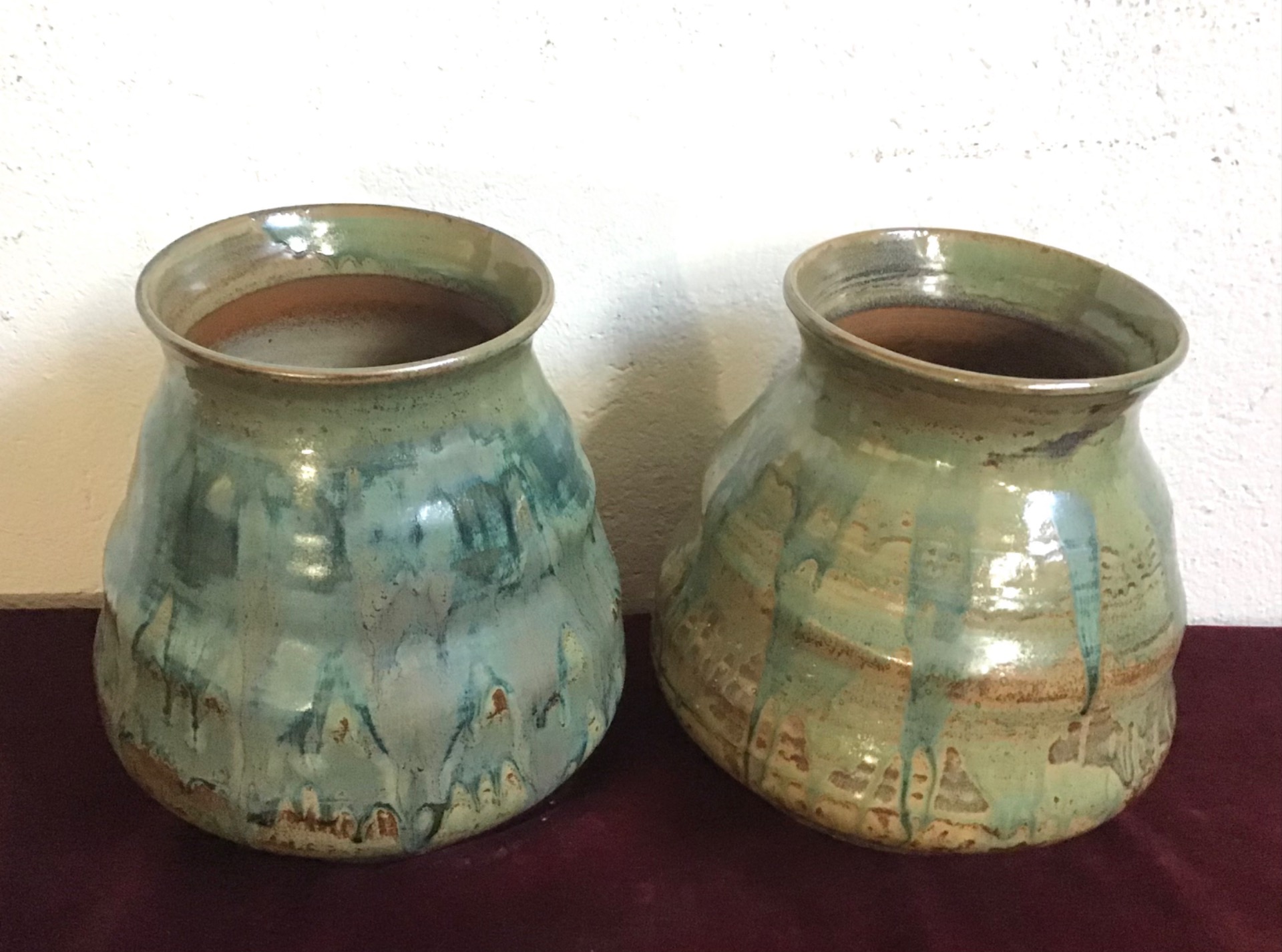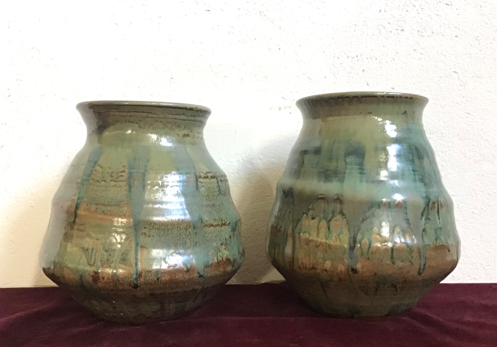 Coppia vasi cinesi di forma particolare con affascinanti colature. Provengono dalla provincia dello Shandon e sono alti cm.24 Acquistabili anche singolarmente.