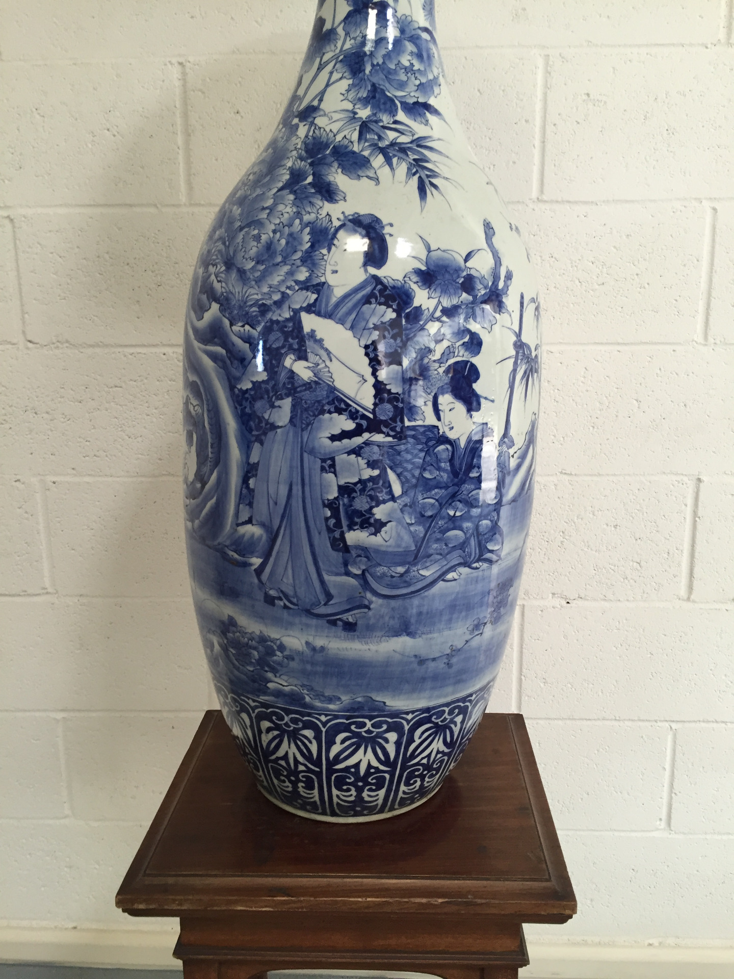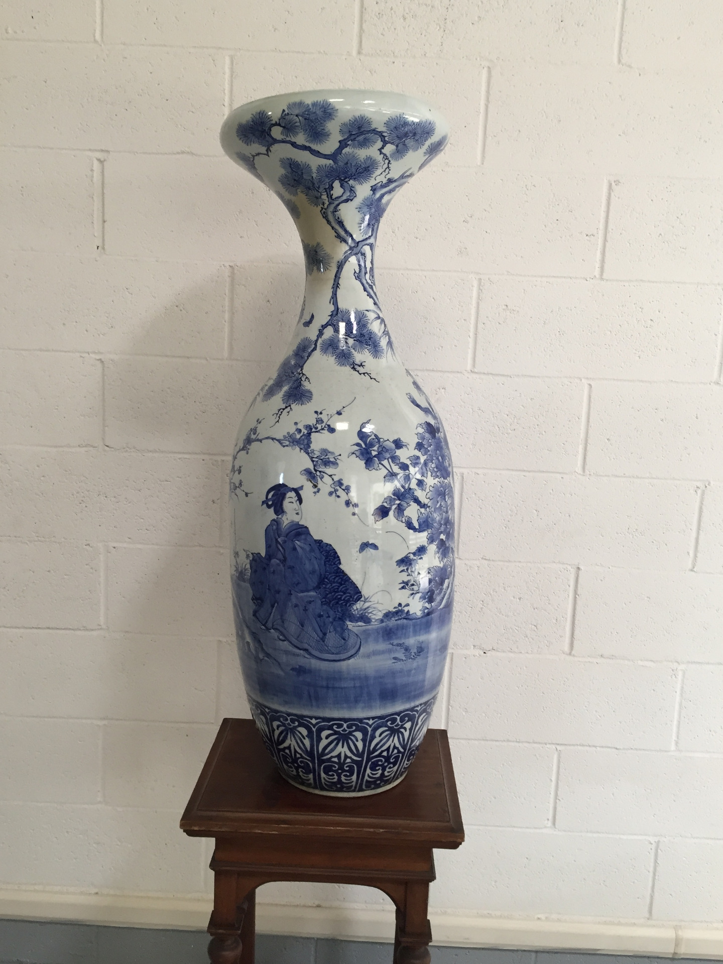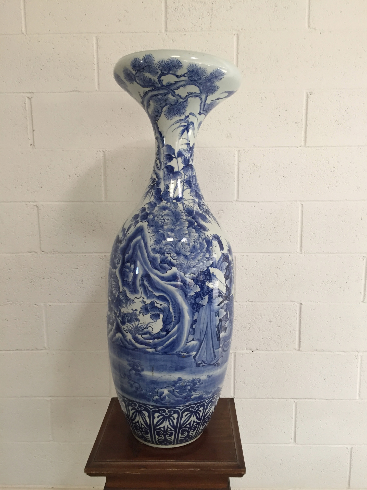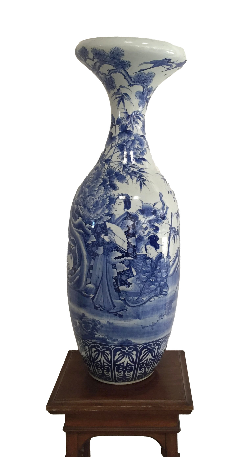 Il vaso, a base circolare, leggermente biansato e con collo a tromba, presenta nella fascia inferiore una decorazione geometrica che richiama elementi fitomorfi. La restante superficie presenta raffinate figure femminili dai tratti, acconciatura e abbigliamento caratteristici del Giappone in un giardino orientale ricco di vegetazione, piante e fiori peculiari della zona nipponica.
