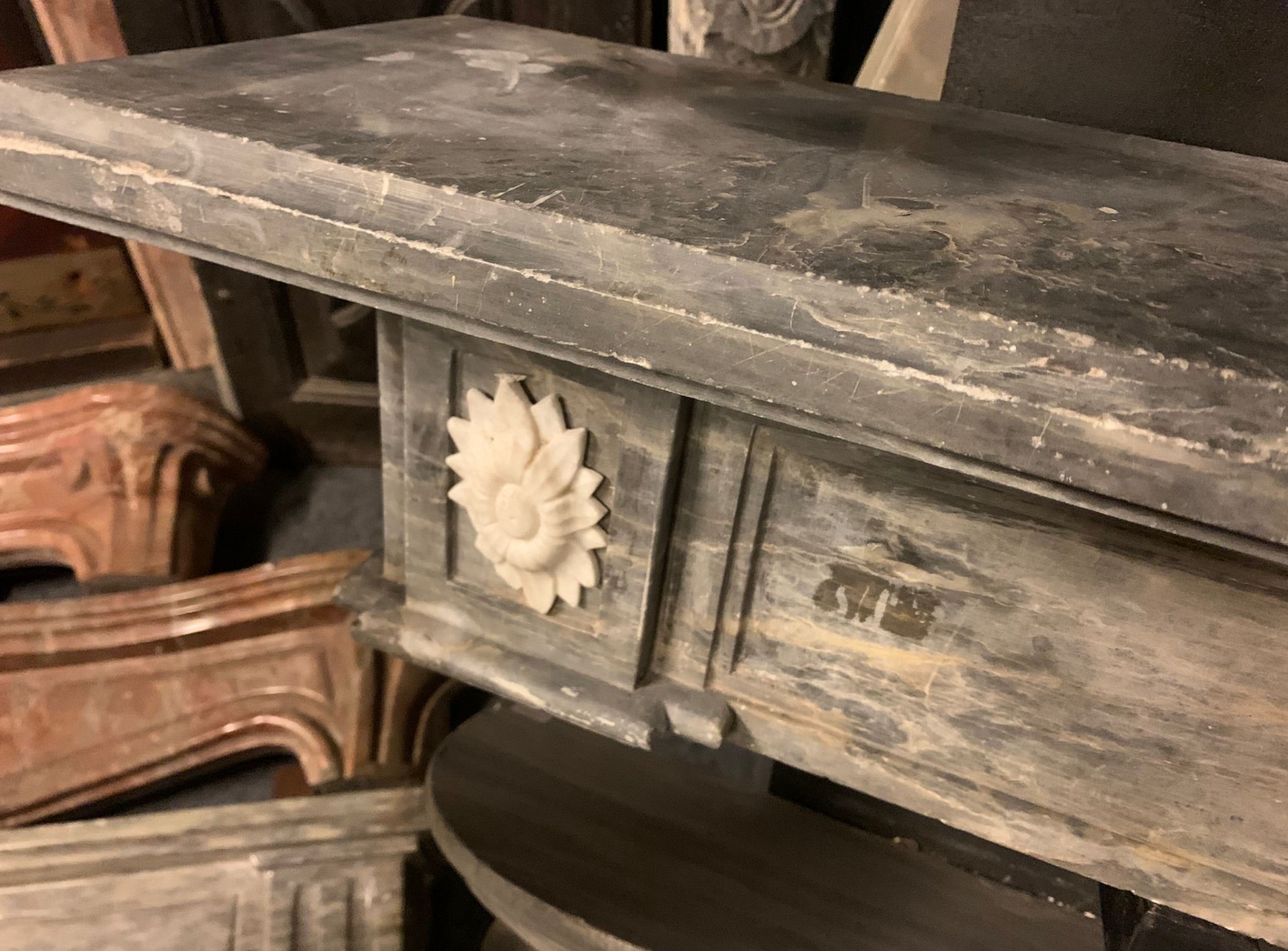 CHM886 - N. 3 Camini completi in marmo grigio, epoca '700, misure diverse