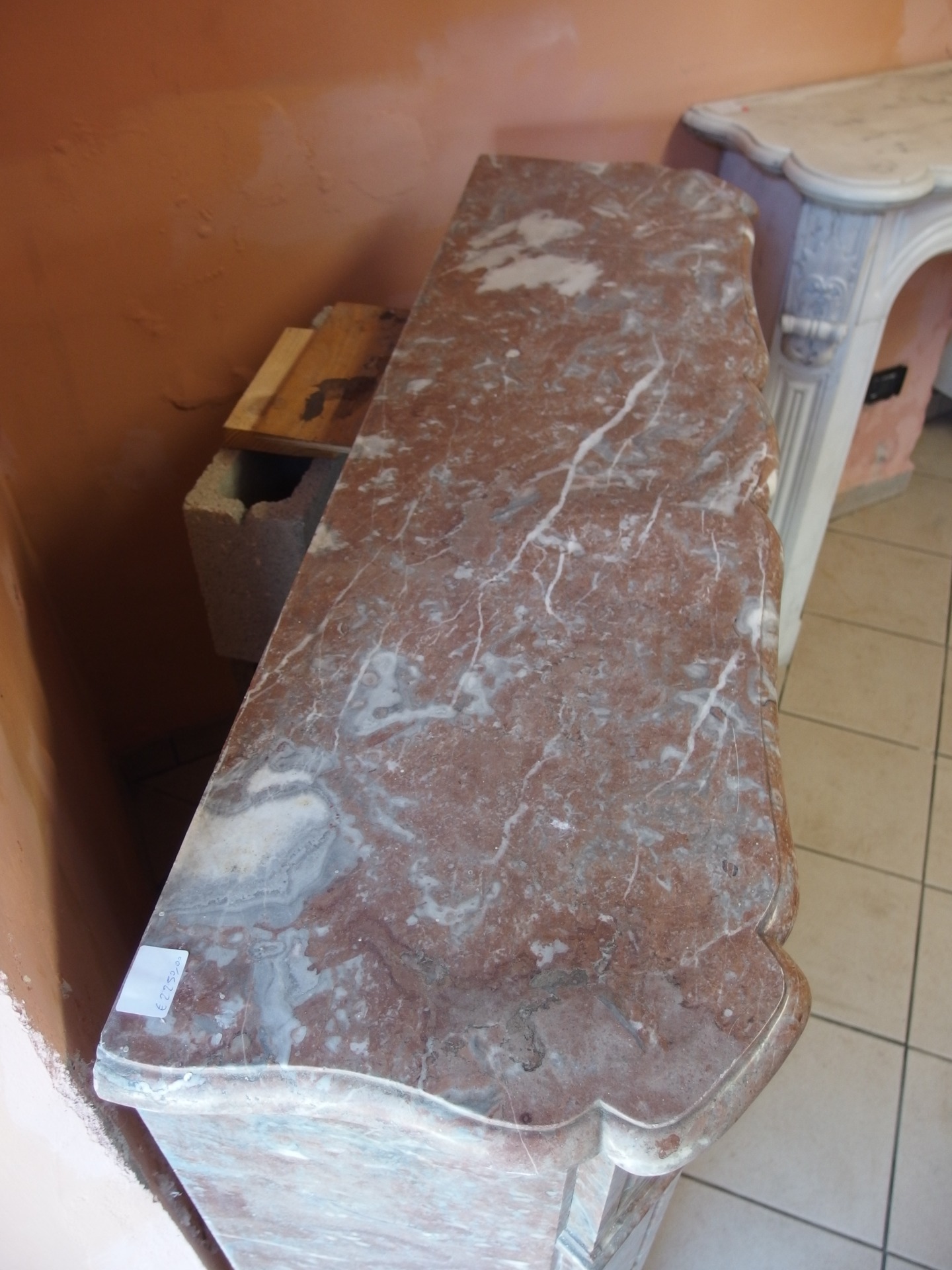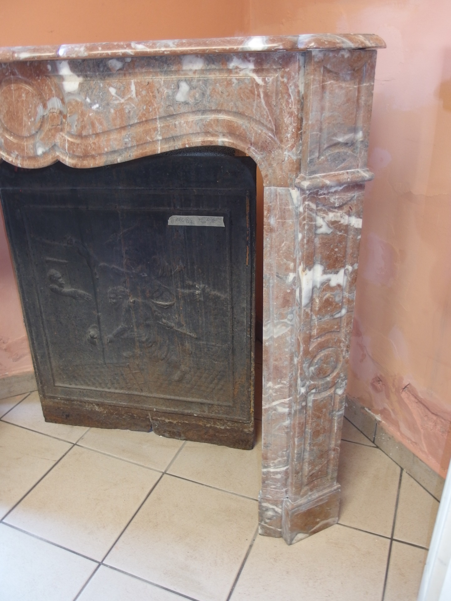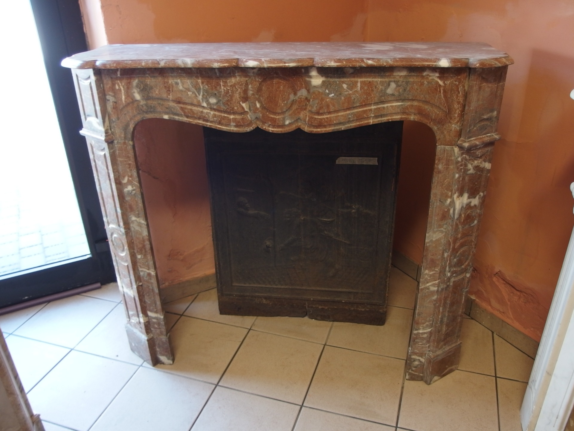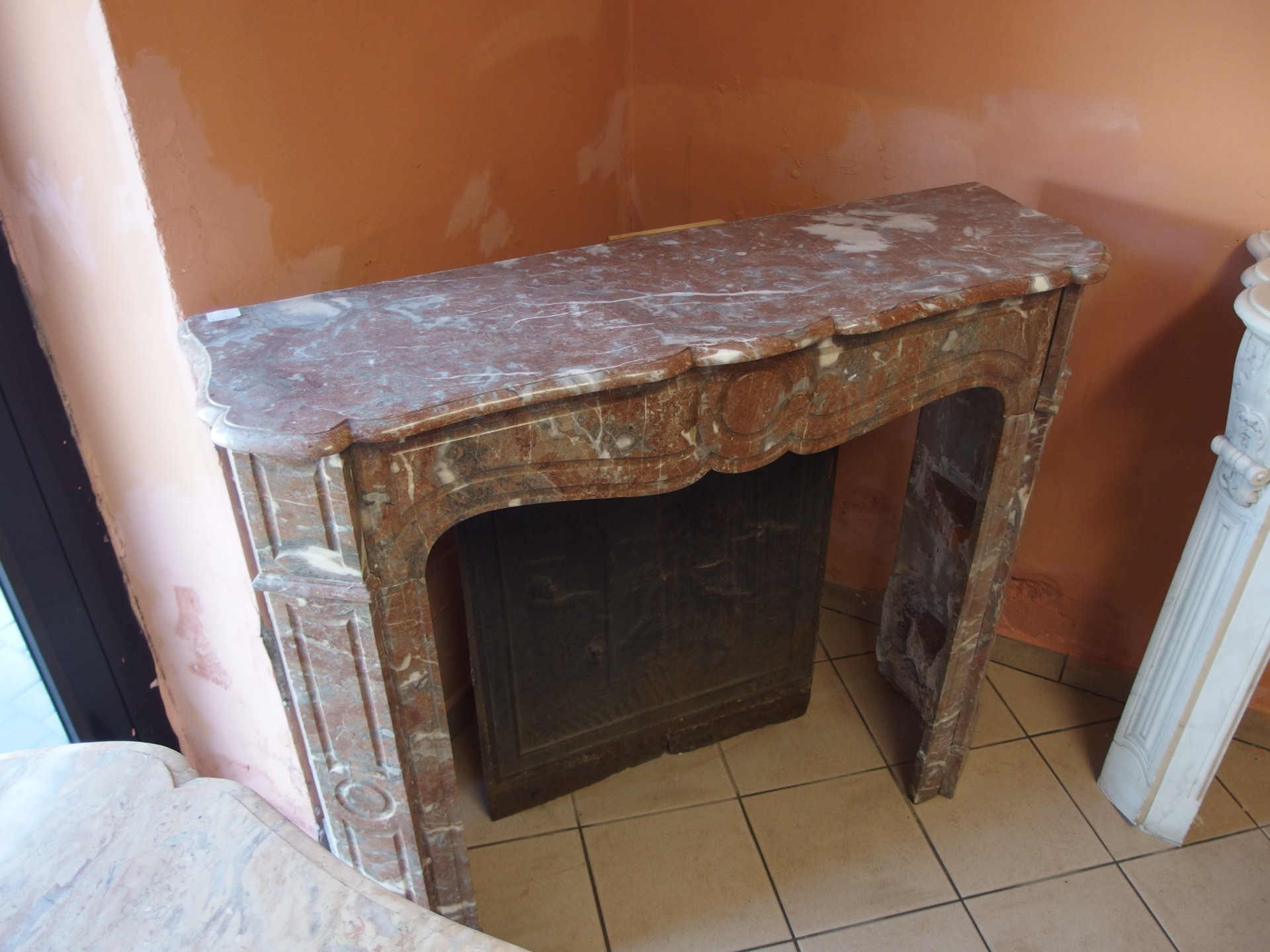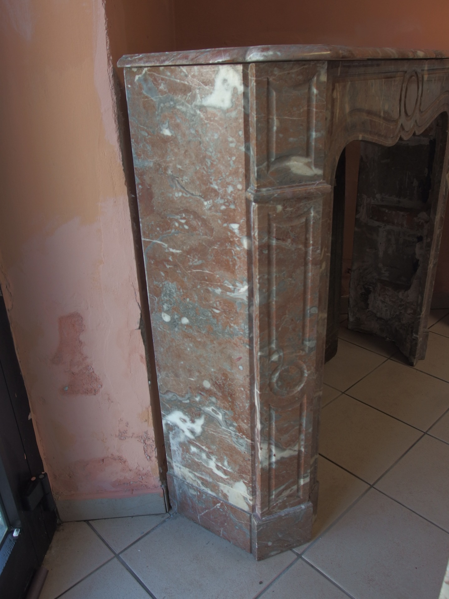 Bellissimo camino in marmo rosato modello pompadour semplice stile Luigi Filippo epoca seconda metà dell'800.
