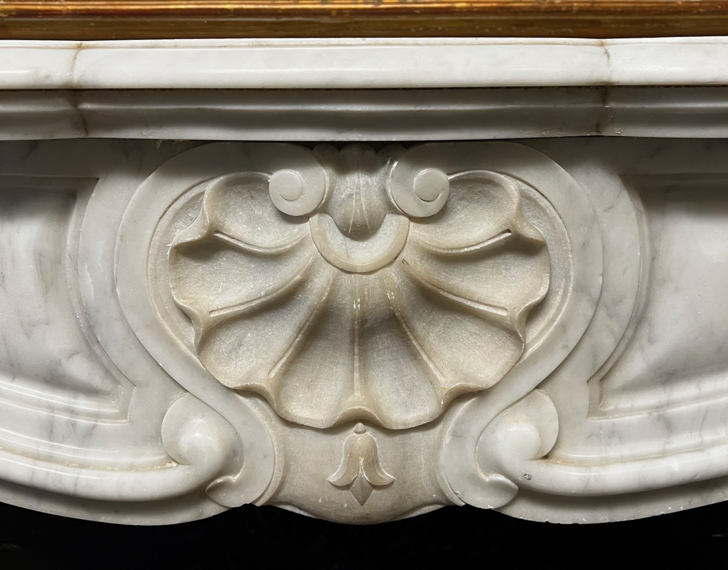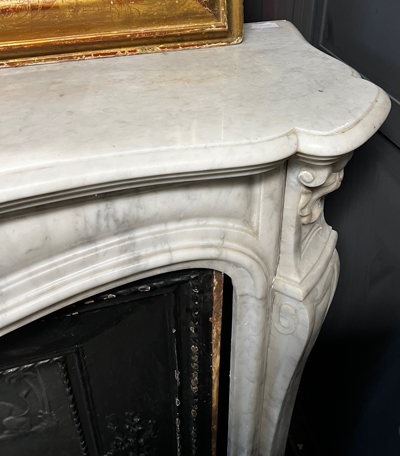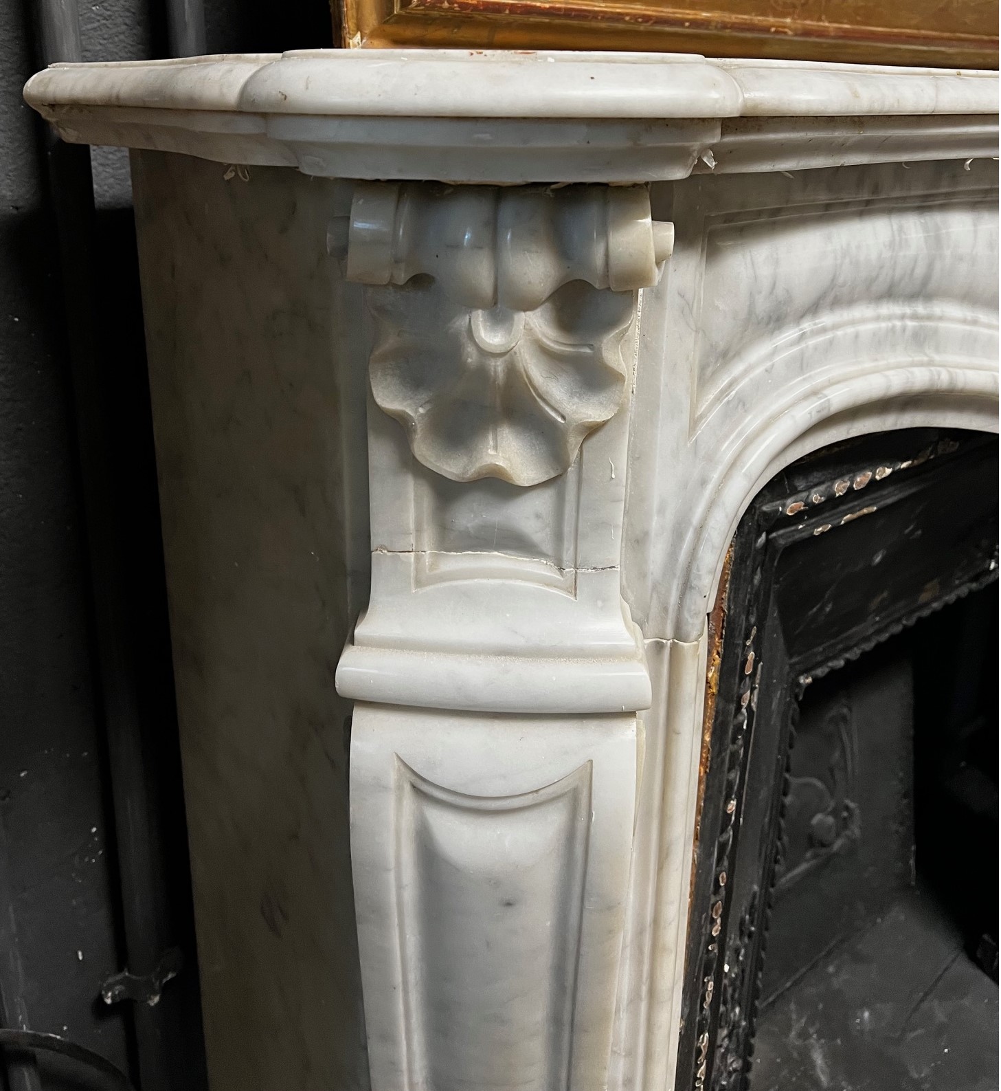 CHM603 - Affascinante camino in marmo bianco di Carrara, epoca '800, misure cm L 145 x H 107 x P 36