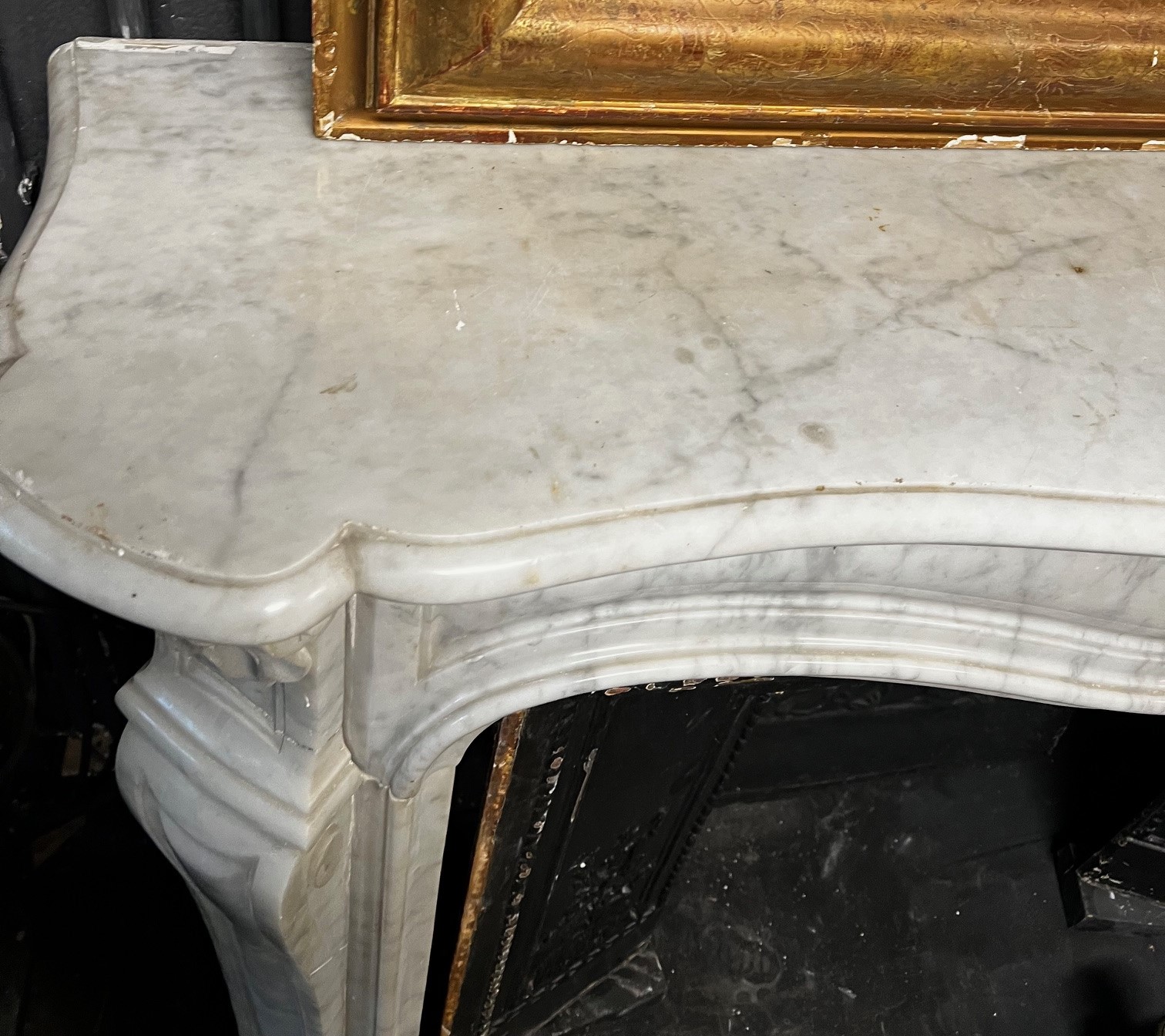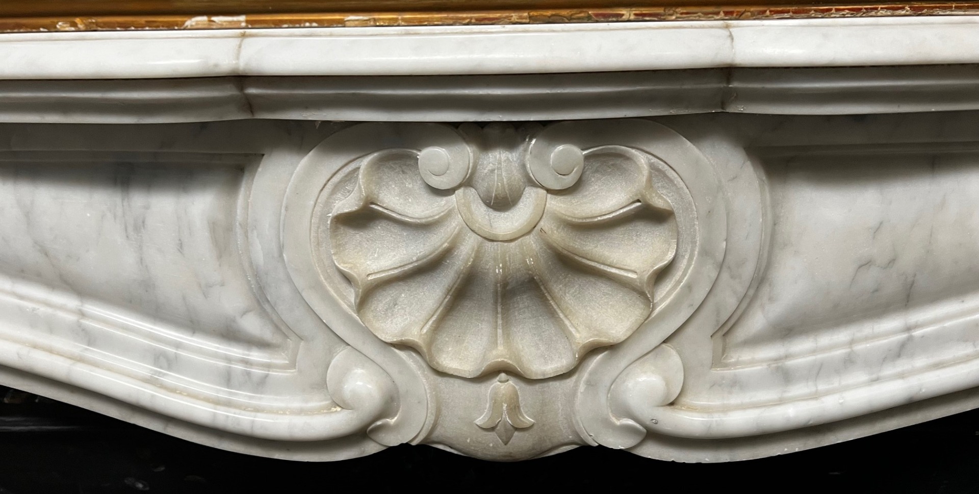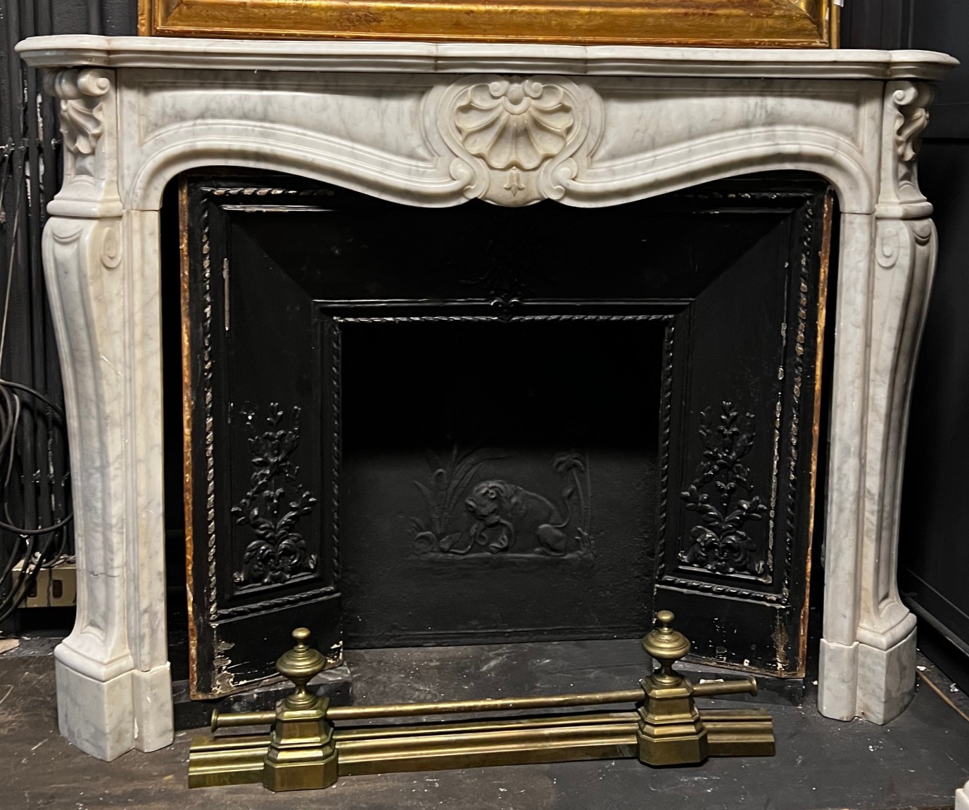 CHM603 - Affascinante camino in marmo bianco di Carrara, epoca '800, misure cm L 145 x H 107 x P 36