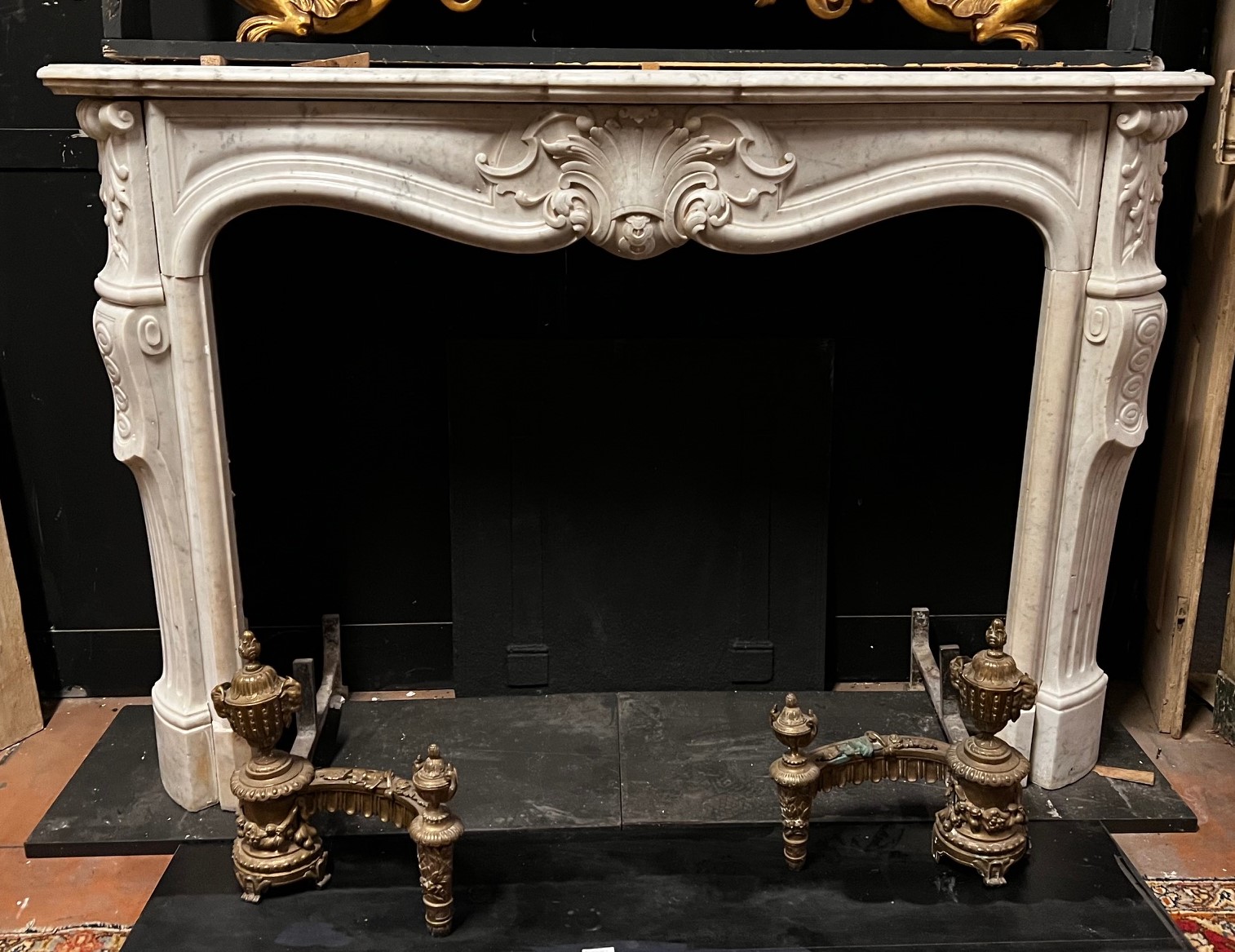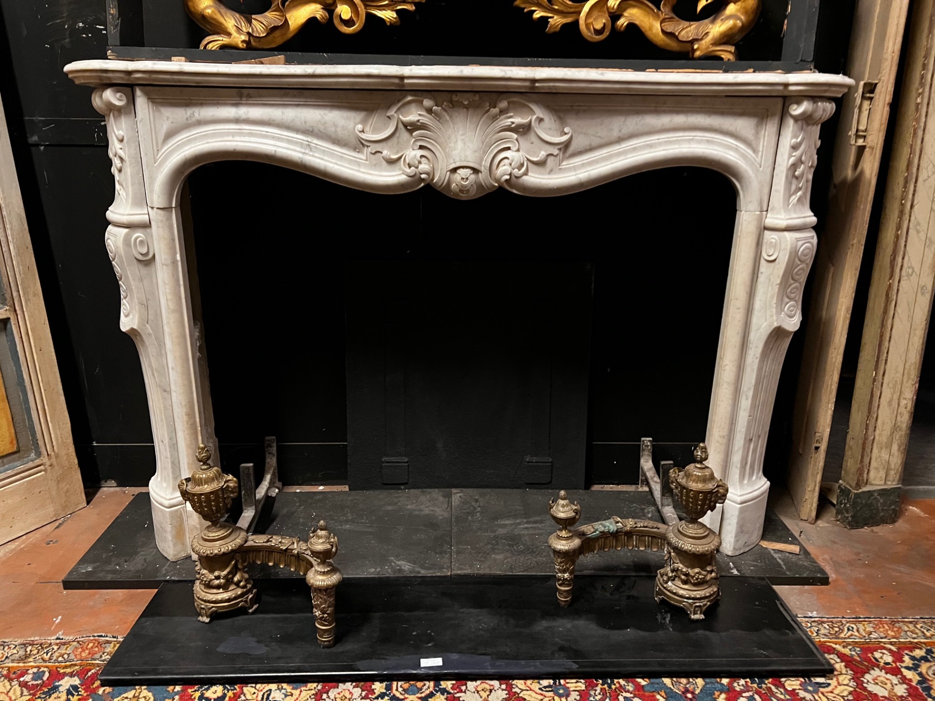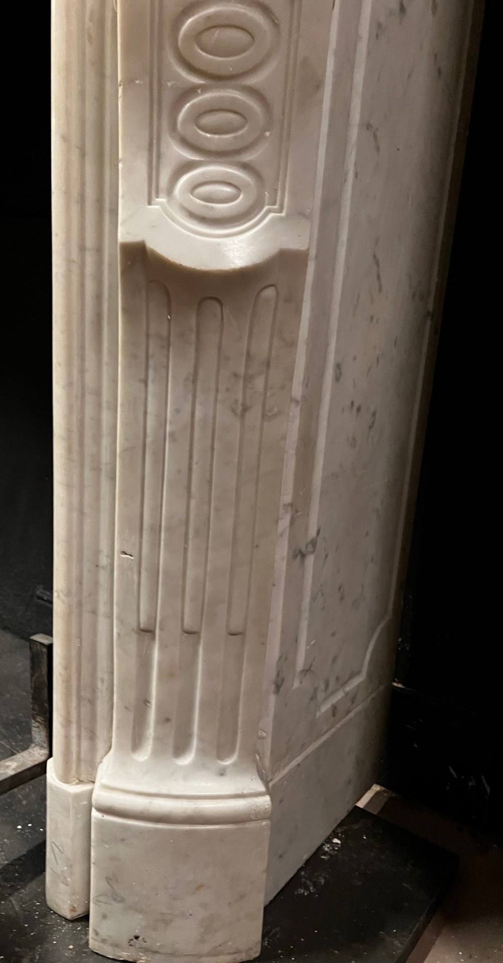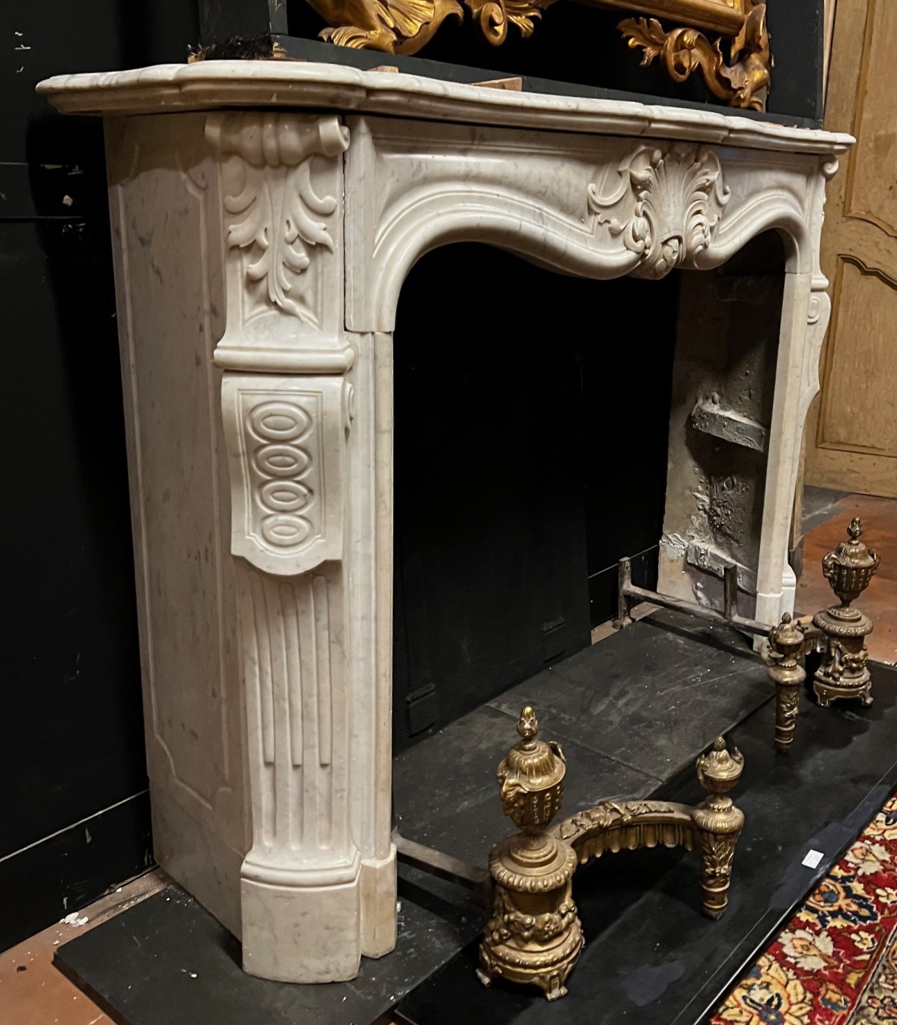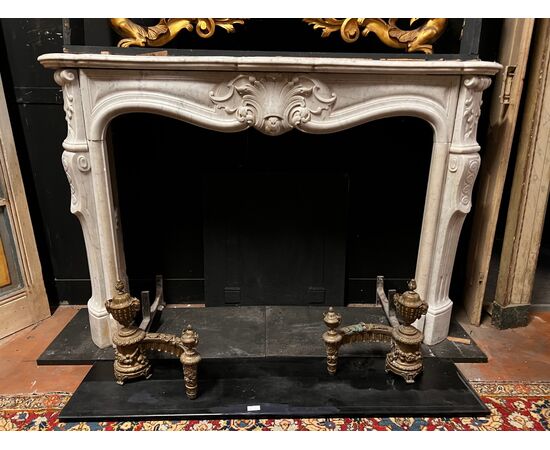 CHM902 - Camino in marmo bianco di Carrara, epoca '800, misure cm L 160 x H 108 x P 40