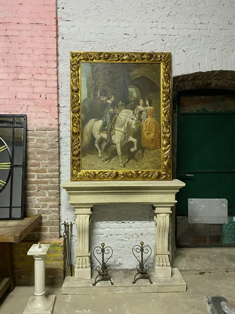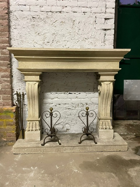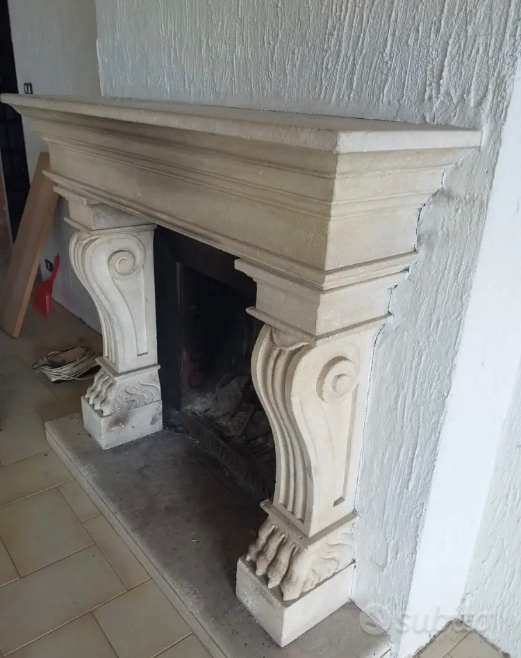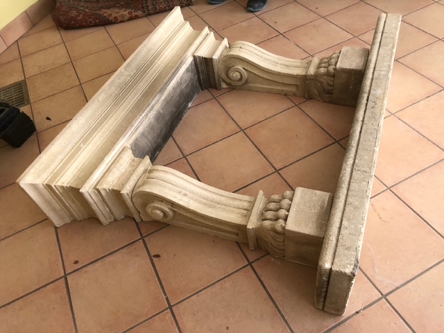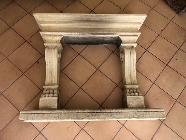 Camino cornice in cemento, scolpito con zampe di leone, '900