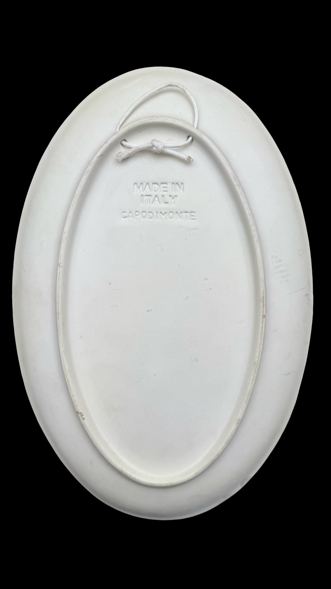 Bassorilievo ovale in porcellana bisquit con decoro floreale in rilievo.Capodimonte.Cm 30x20x5.