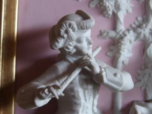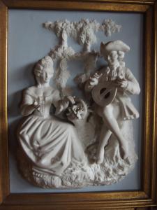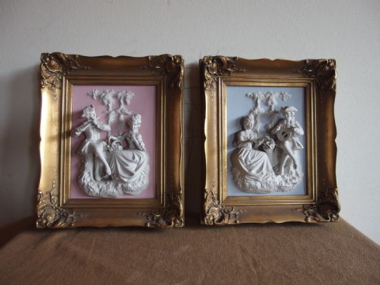 Bellissimi quatretti con bassorilievi biscuit raffiguranti persone epoca fine 800 primi 900 provenienza francesi.Le cornici sono in legno dorato (VEDI FOTO)