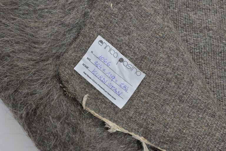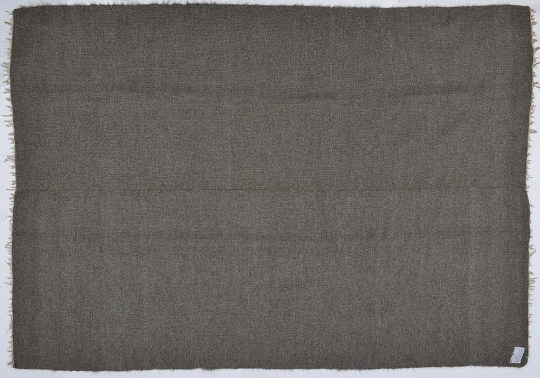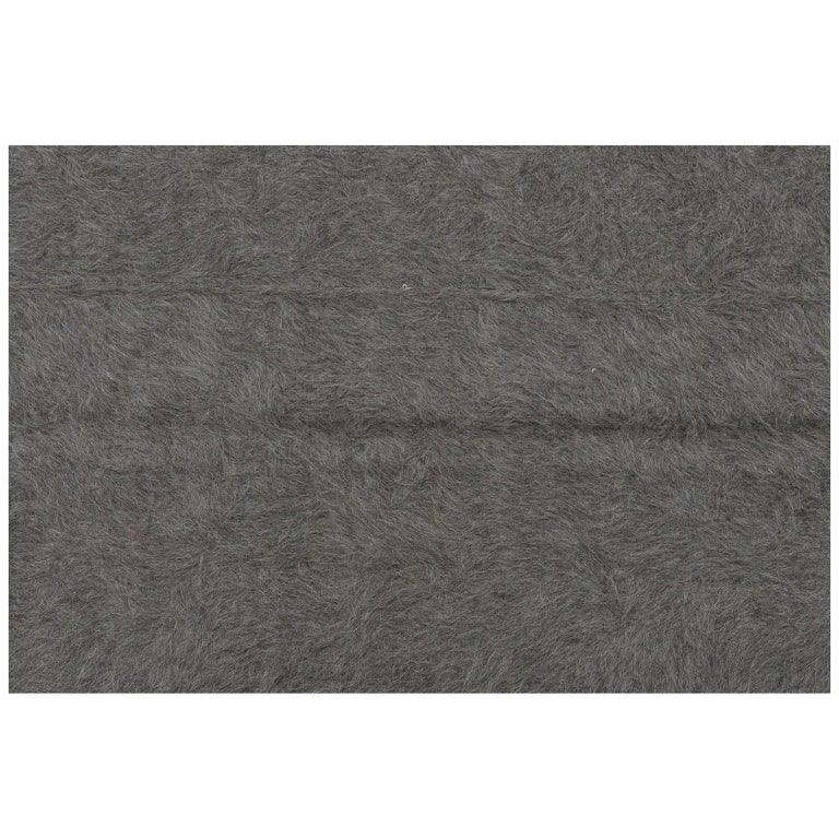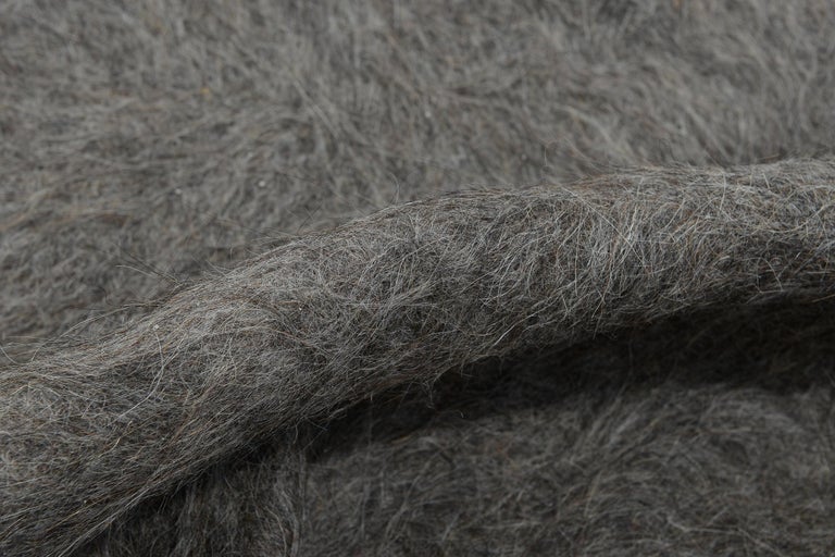 Particolare tappeto a pelo lungo, da usare anche come coperta o copri-divano: in morbida lana grigia, proveniente dal Kurdestan, (in gusto certamente minimalista, si può dire).
