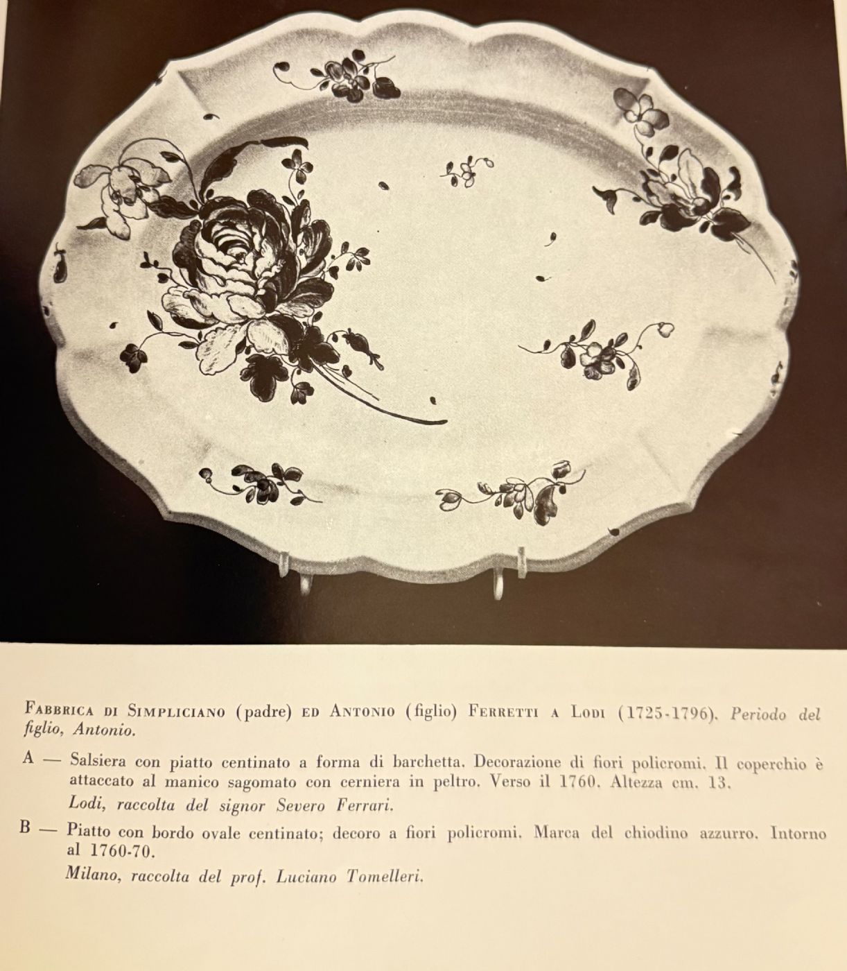 Piatto in maiolica decorato alla rosa.Manifattura Ferretti.Lodi.