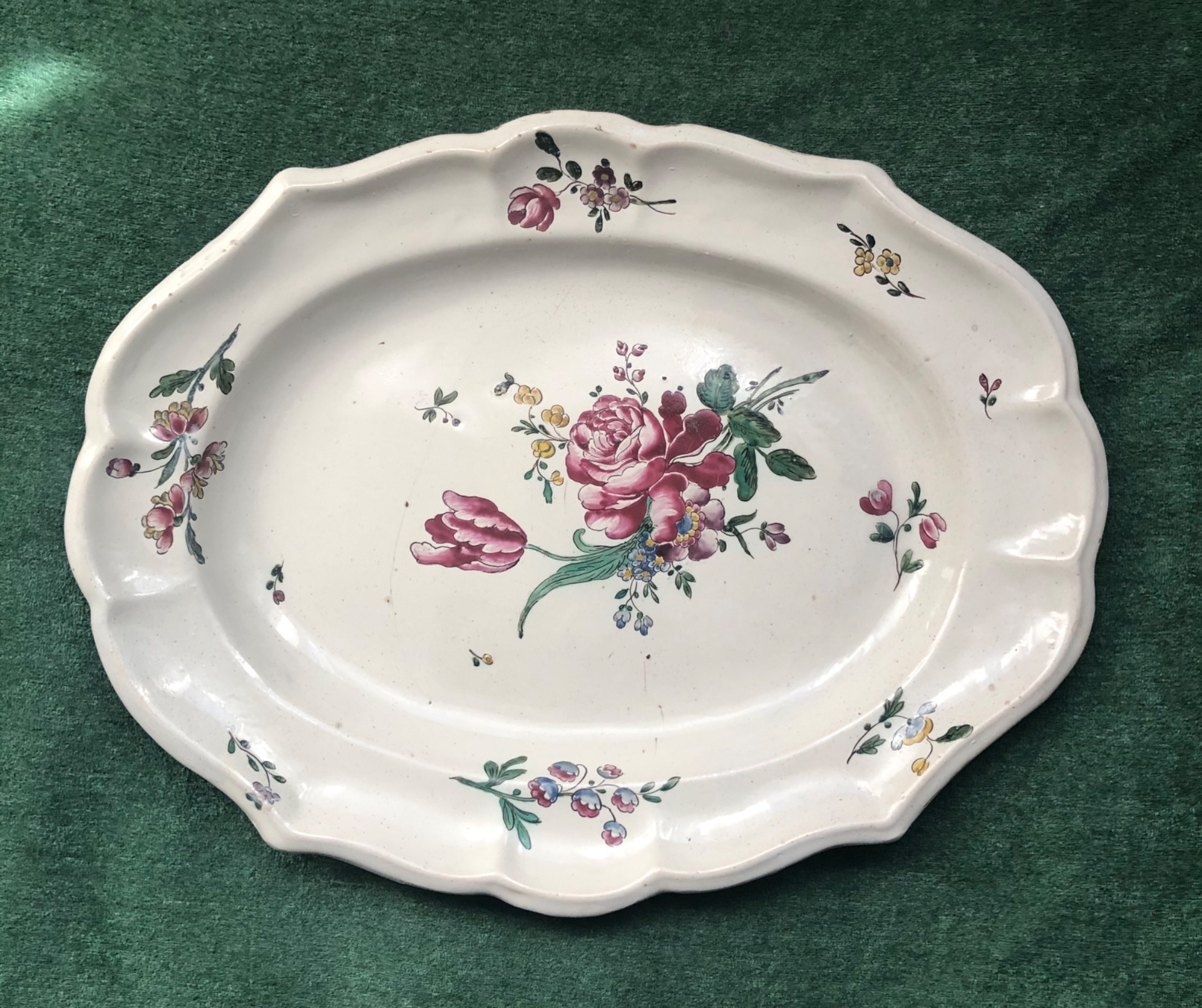 Piatto in maiolica decorato alla rosa.Manifattura Ferretti.Lodi.Cm 38x30.