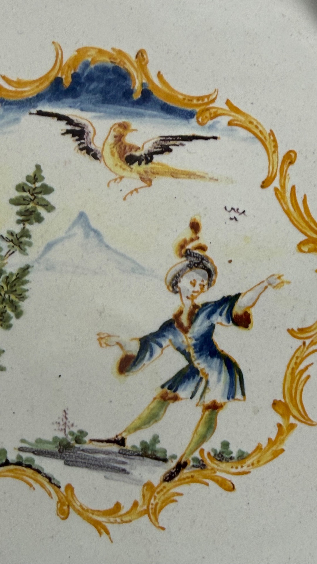 Piatto in maiolica decorato con personaggio in ambiente agreste.Manifattura Coppellotti.Lodi.
