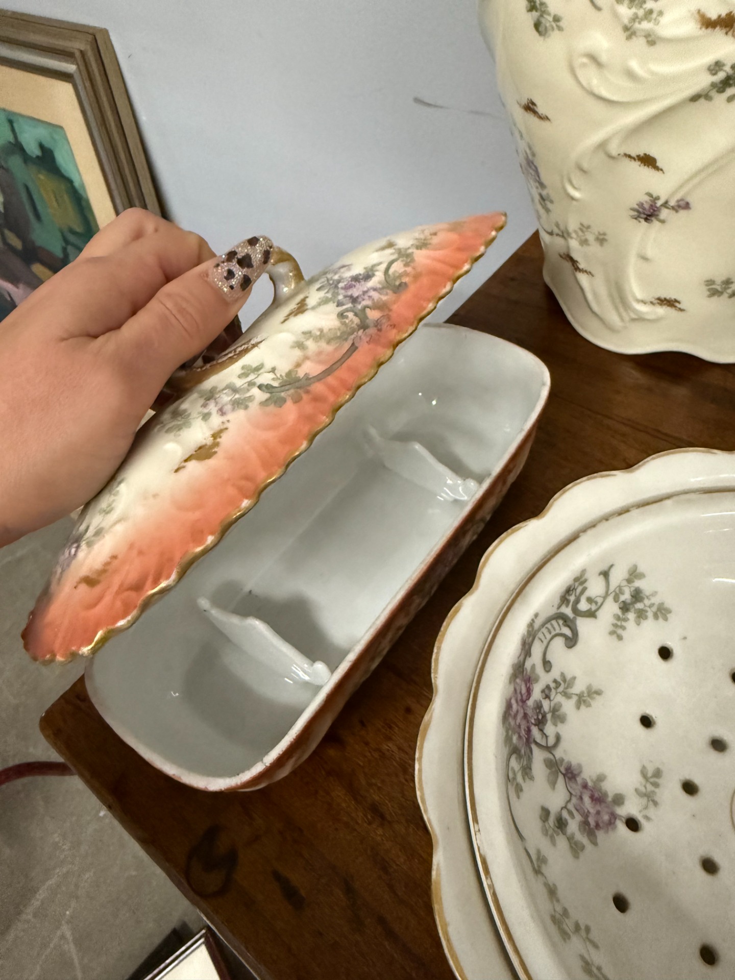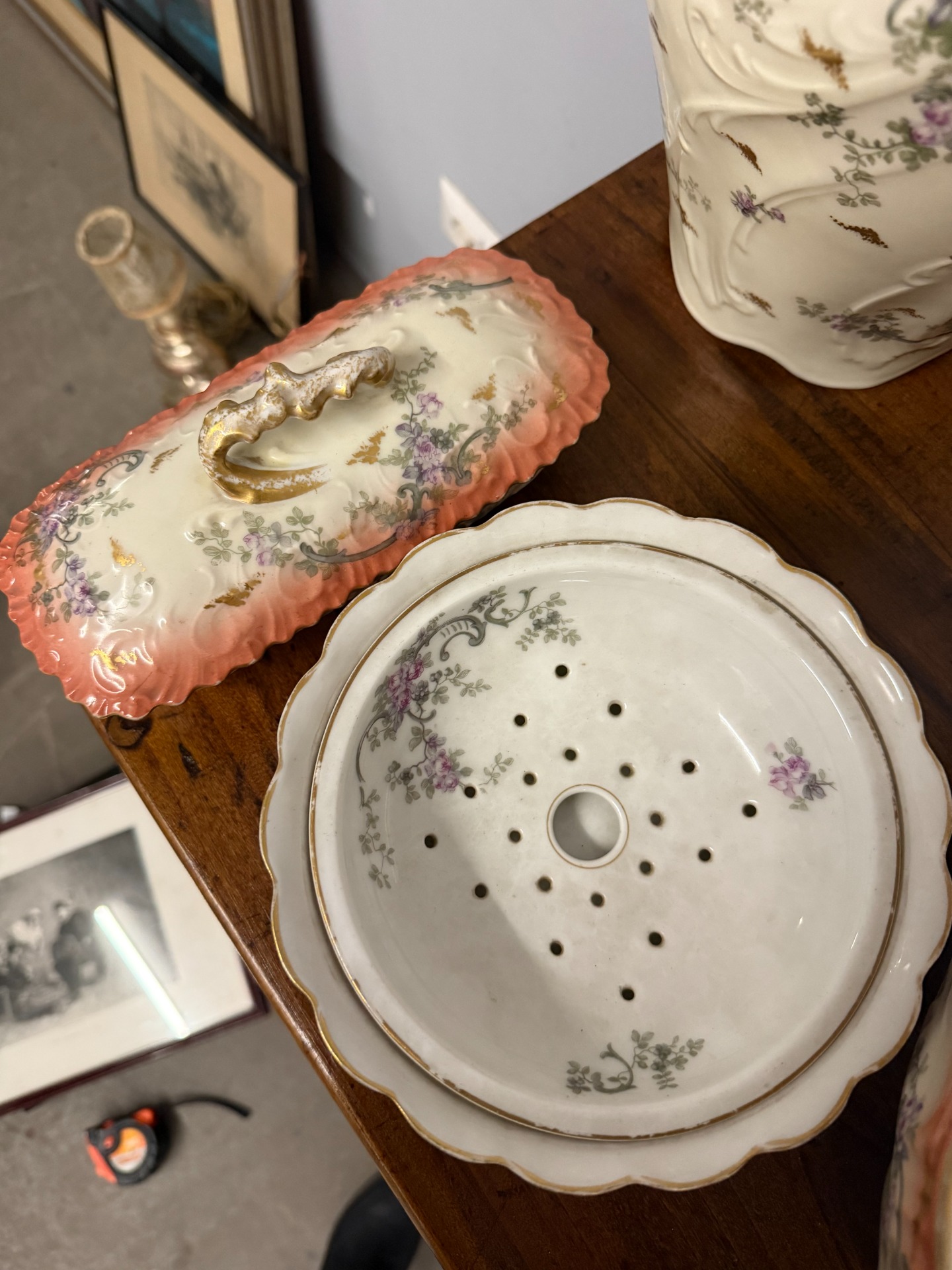 Antico set da toilet in porcellana Limoges, '800, 30x40cm