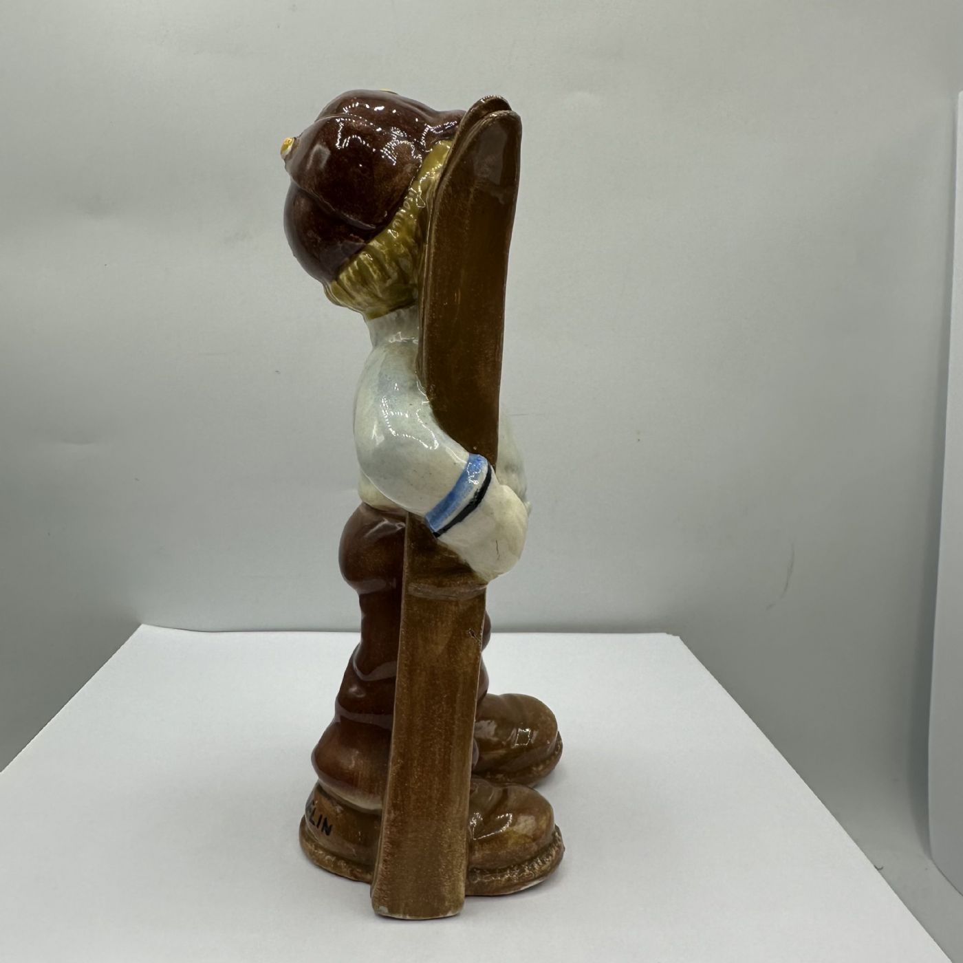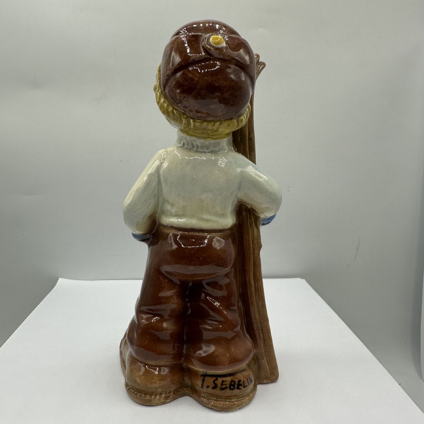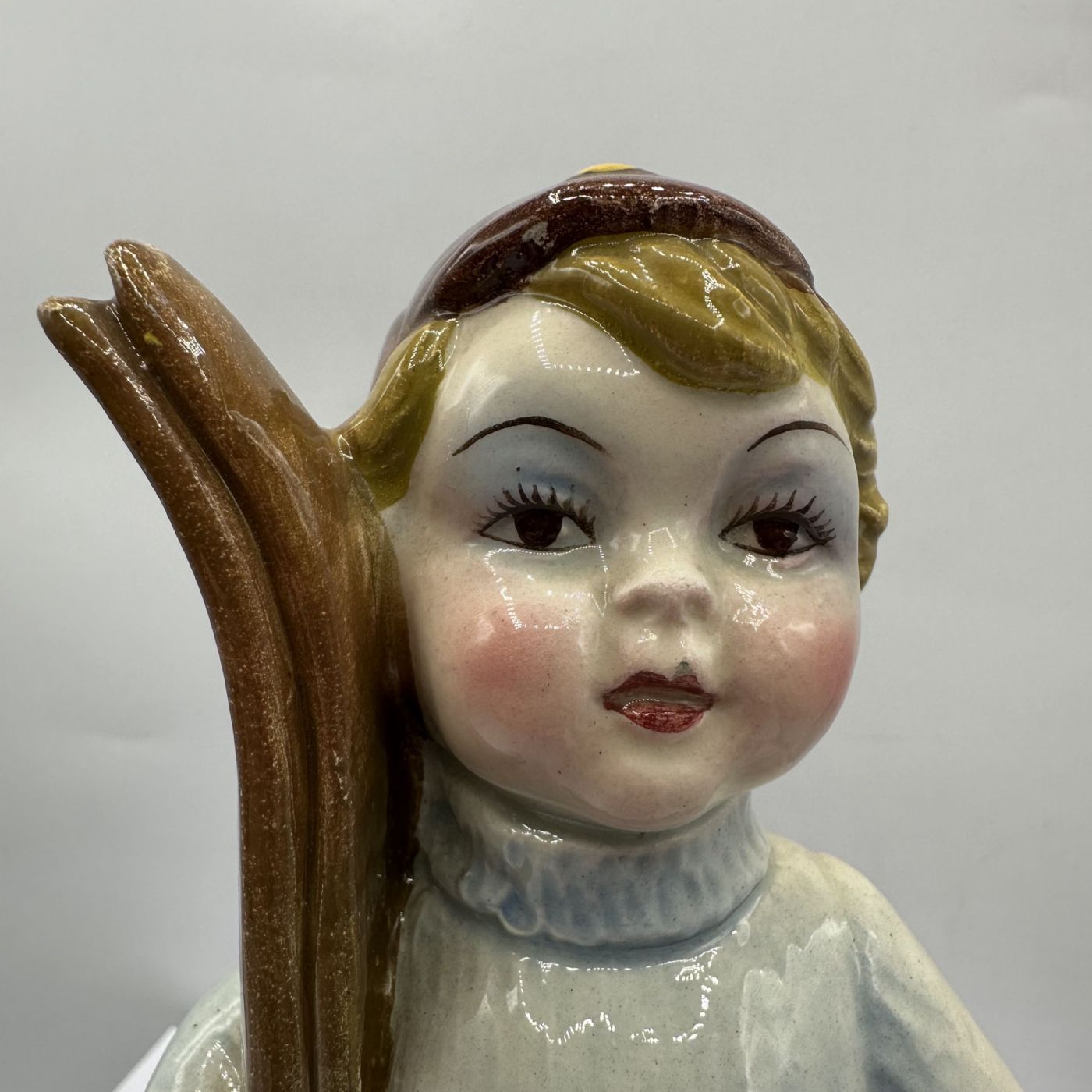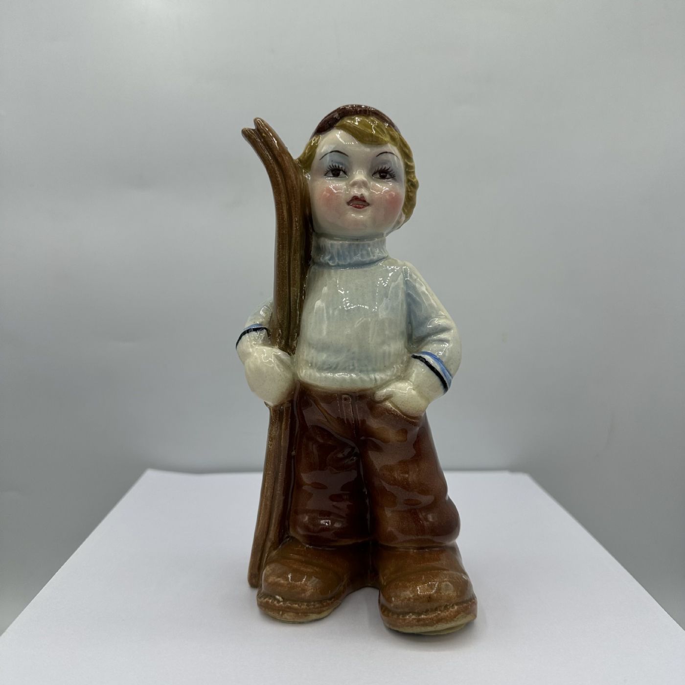 Scultura di fanciullo con sci in ceramica policroma - Vicenza - Anni 40' - misure h17.5 x L9 cm x P6 cm