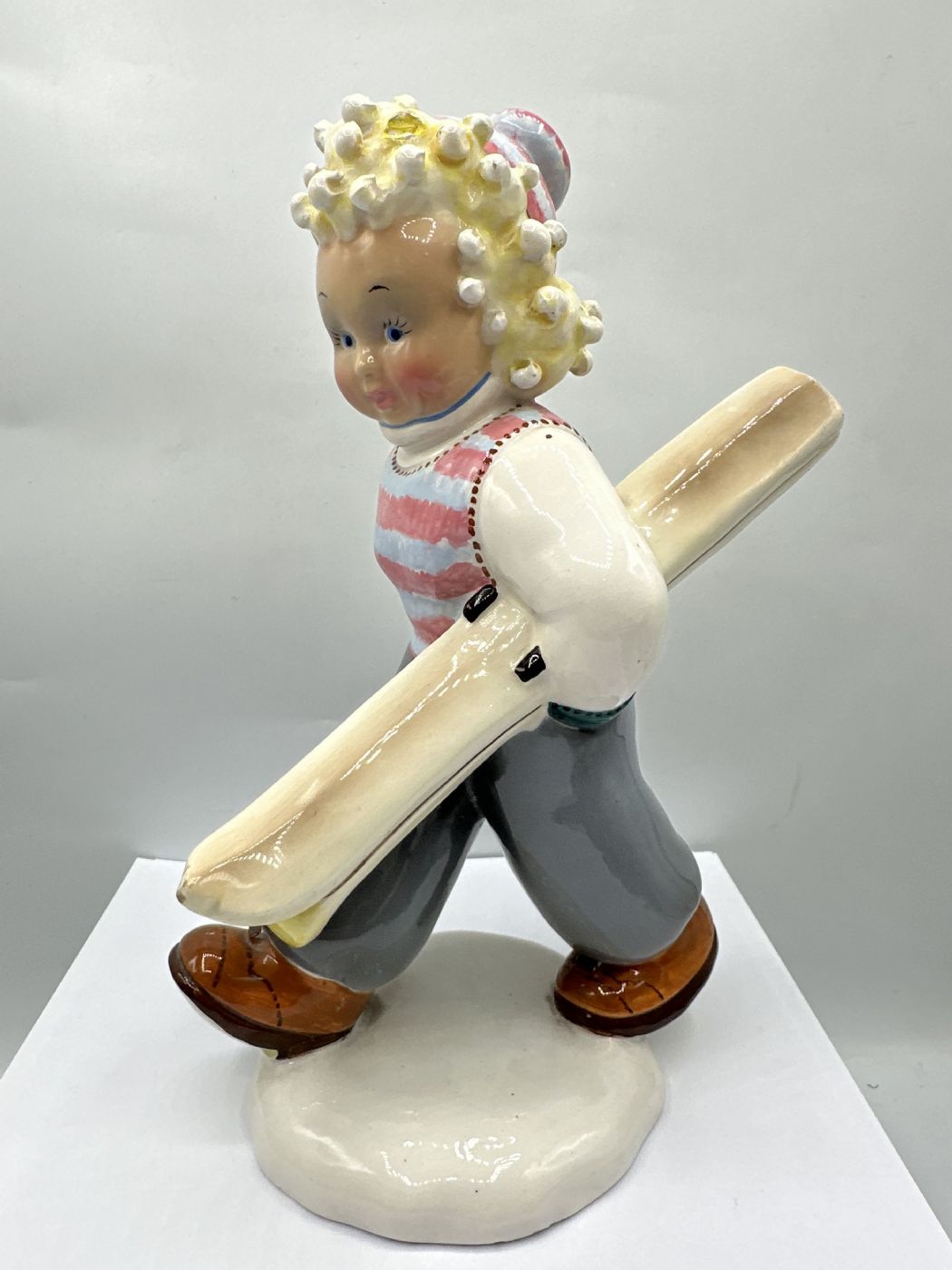 Scultura di fanciulla con sci - ceramica h24 cm x l17 x P12 cm - Firmato sul retro Tarcisio Tosin anni 40'