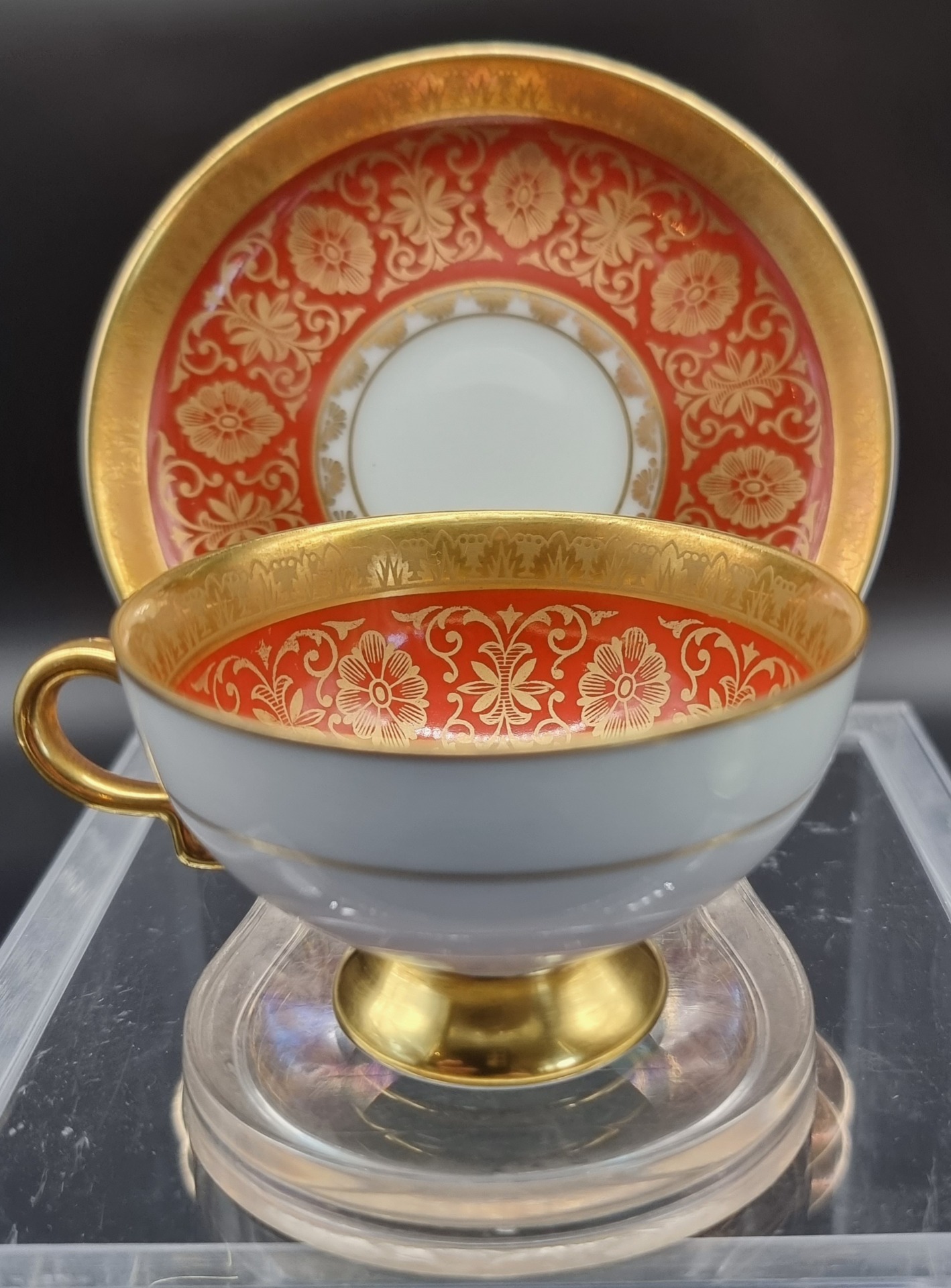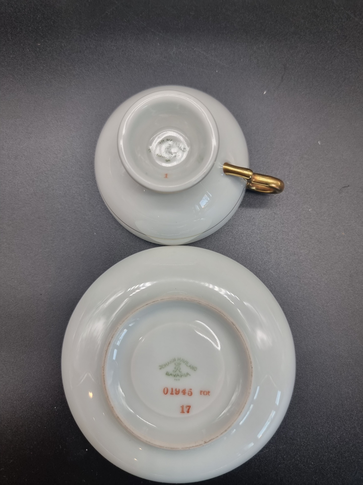 Johann Haviland Bavaria Due tazze da caffè in porcellana - Tazze da caffè In porcellana Waldershof Germania - Motivo neoclassico piattino diametro cm11 tazzina alta cm4.5- Anni 1930