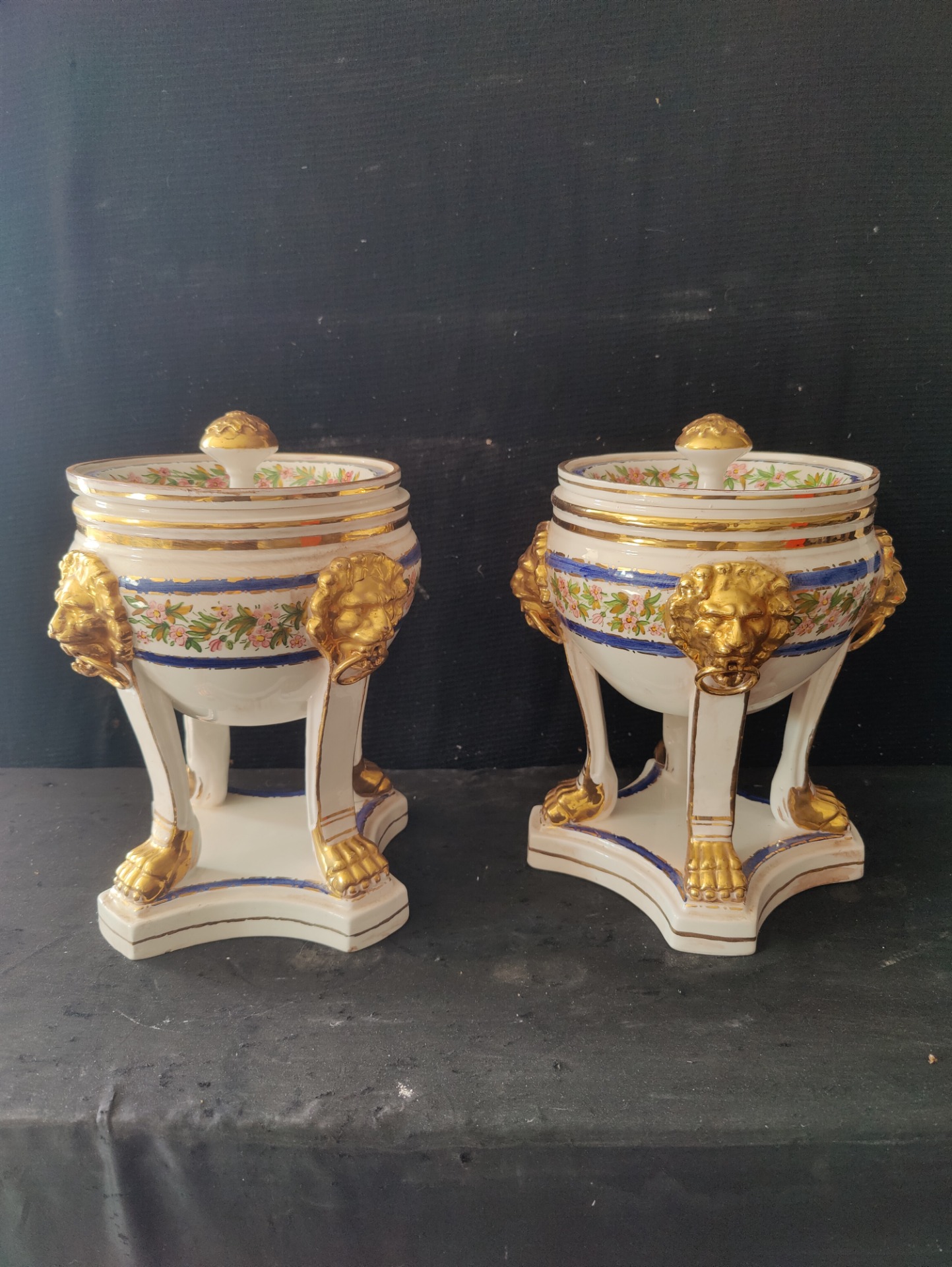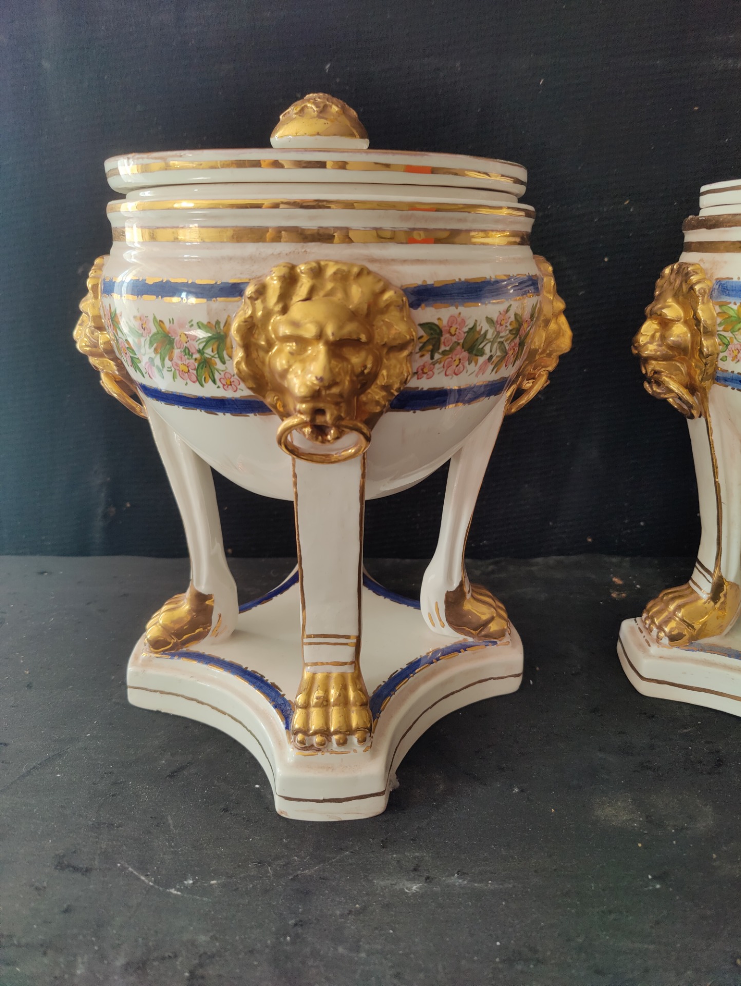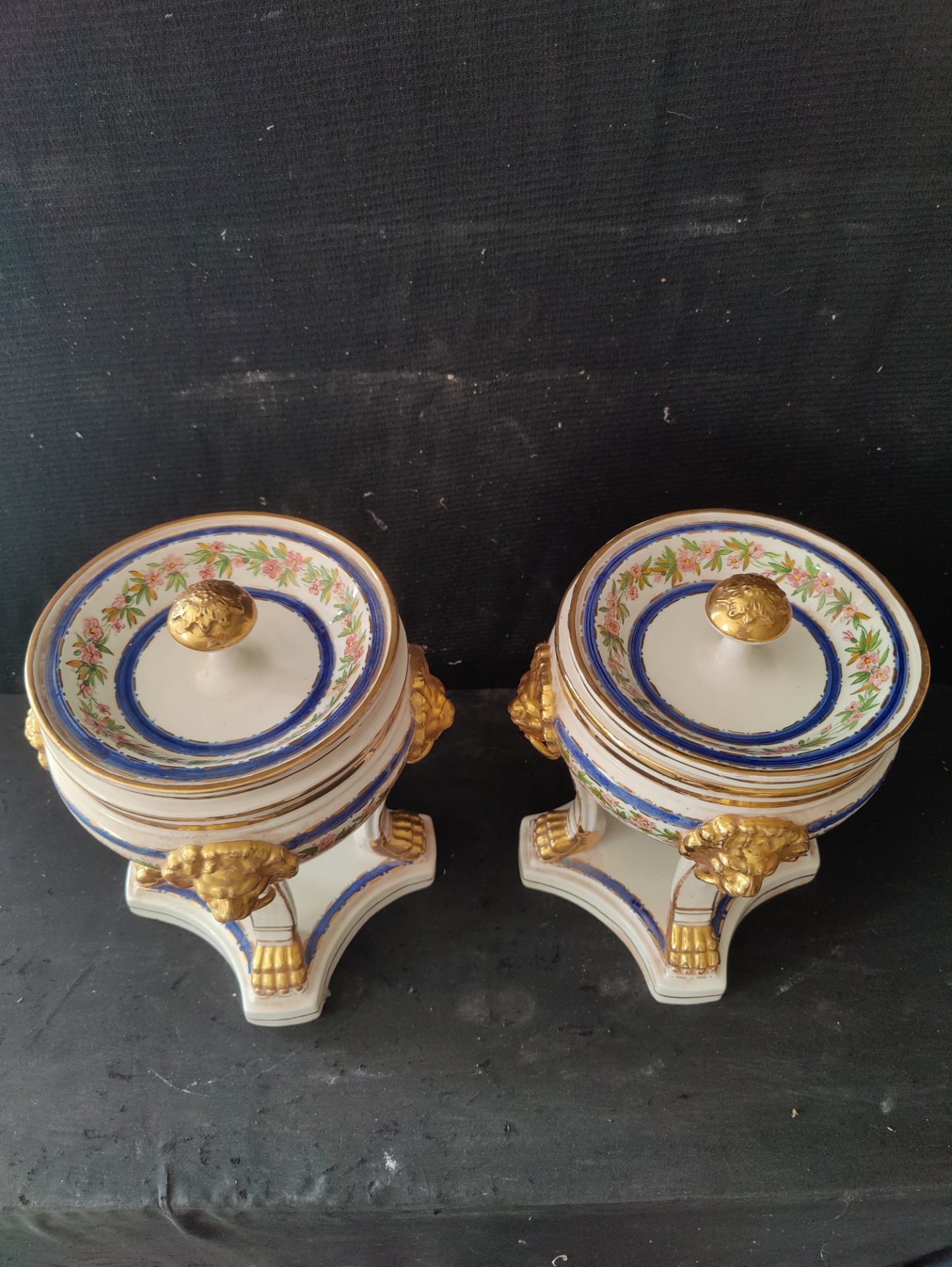 Spettacolare coppia di gelatiere in Ceramica, ceramica di Bassano completamente dipinte a mano.Più uniche che rare in quanto sono completamente integre, i colori sono ancora molto vivi e accesi, inoltre sono comprensive di coperchio.