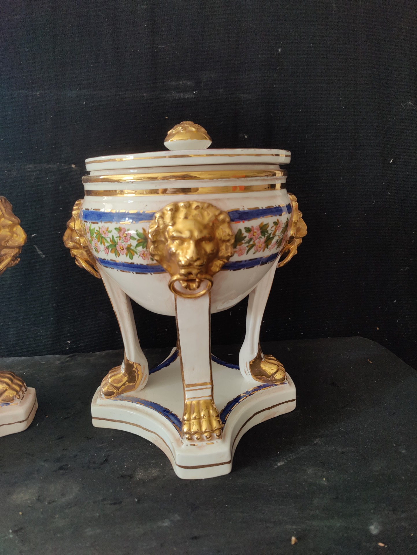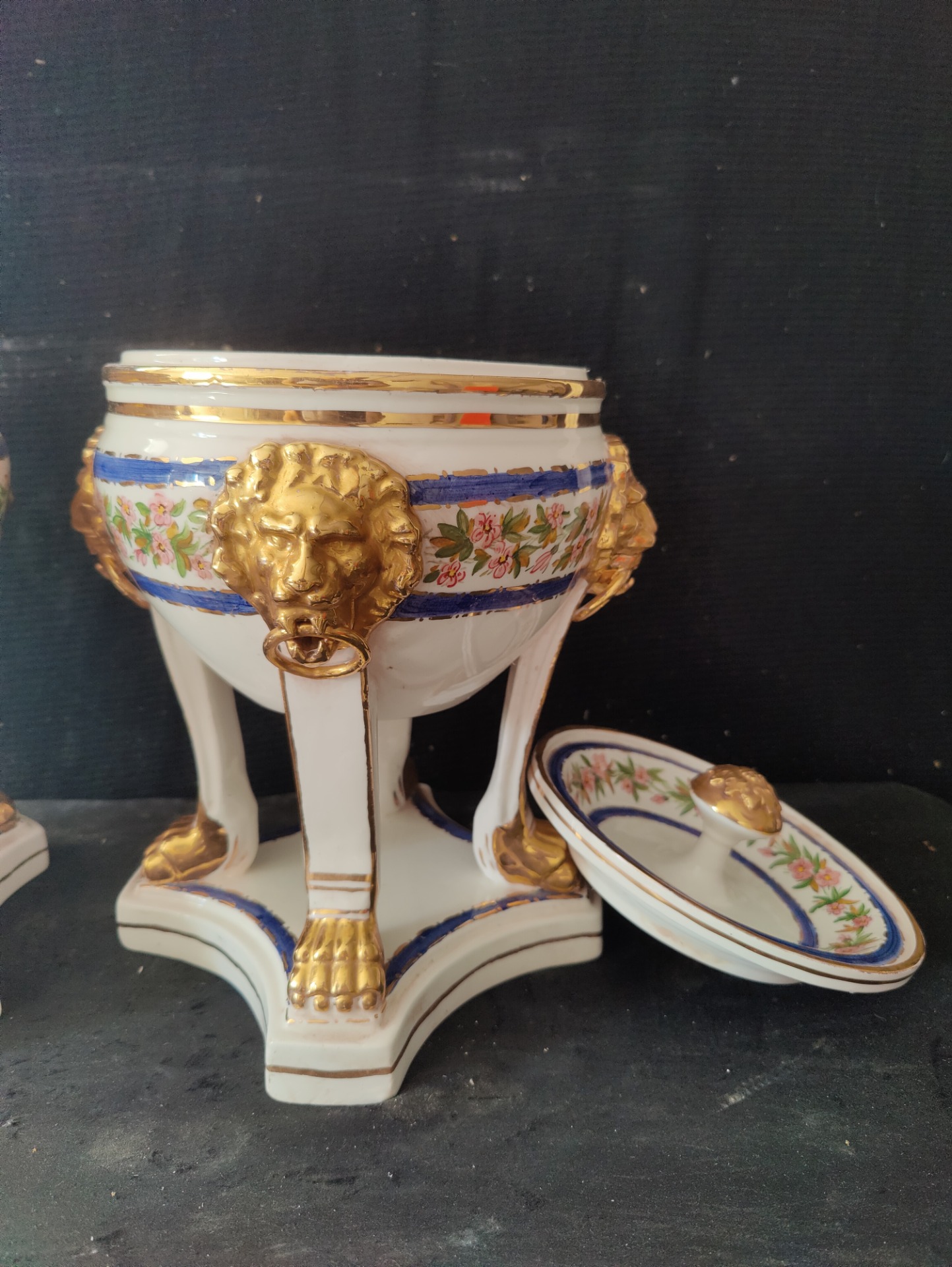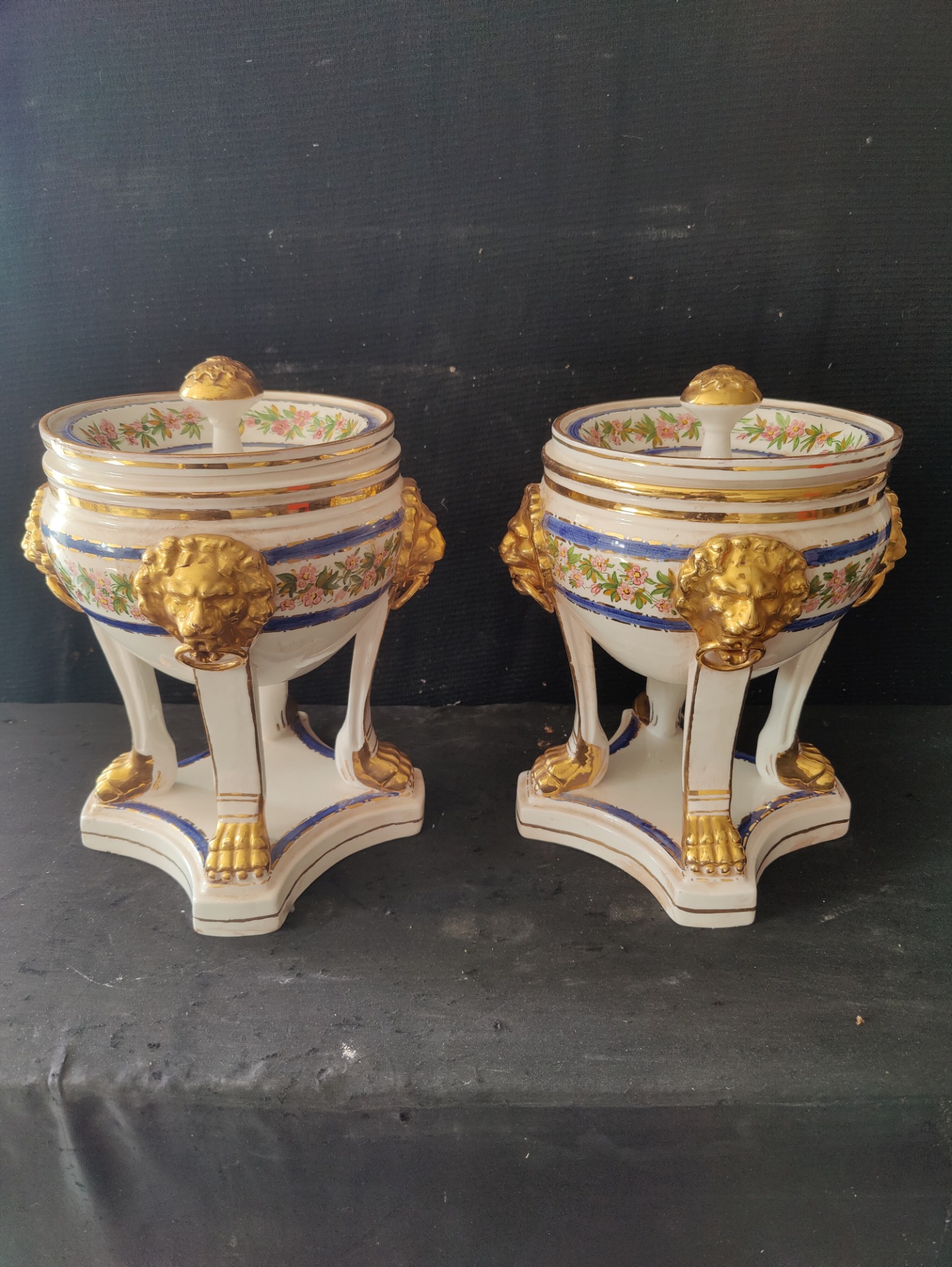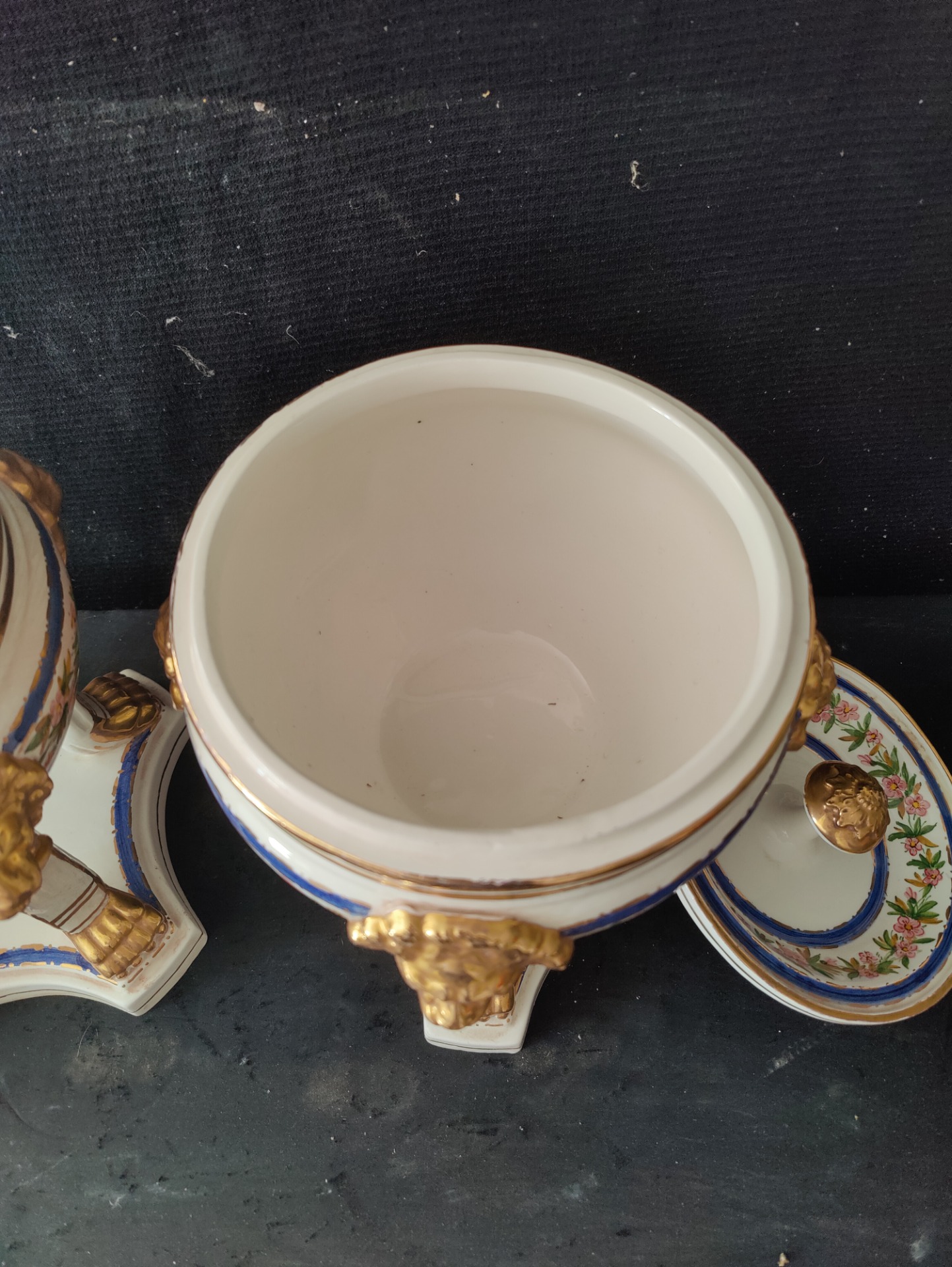 Spettacolare coppia di gelatiere in Ceramica, ceramica di Bassano completamente dipinte a mano.Più uniche che rare in quanto sono completamente integre, i colori sono ancora molto vivi e accesi, inoltre sono comprensive di coperchio.