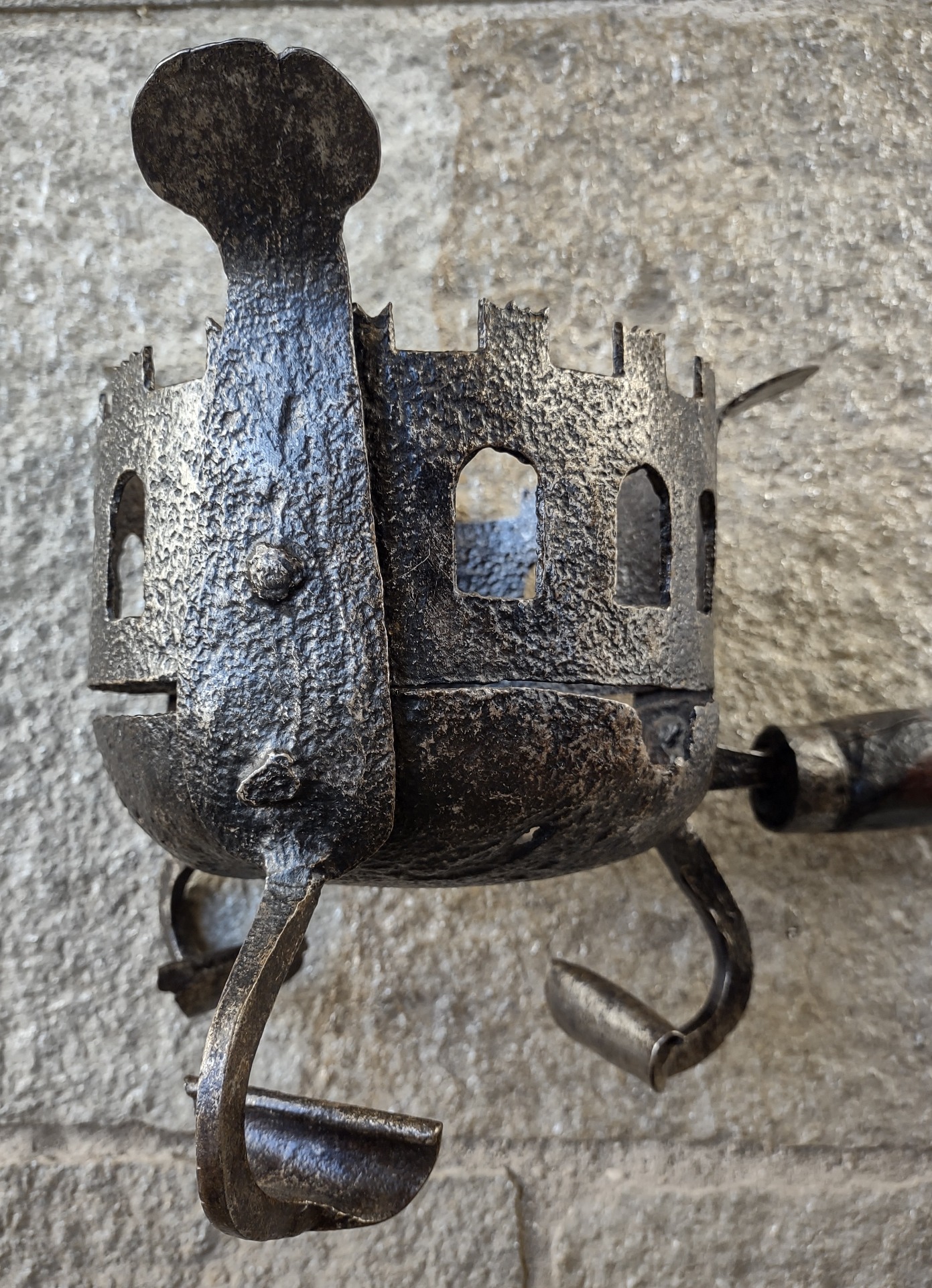 Braciere toscano a castello in ferro forgiato e traforato XV secolo