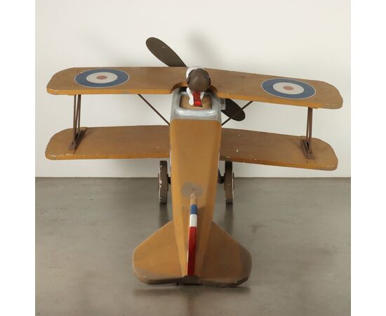 Modello di aereo con Snoopy Aviatore in polistirolo dipinto. Sostegni in legno.