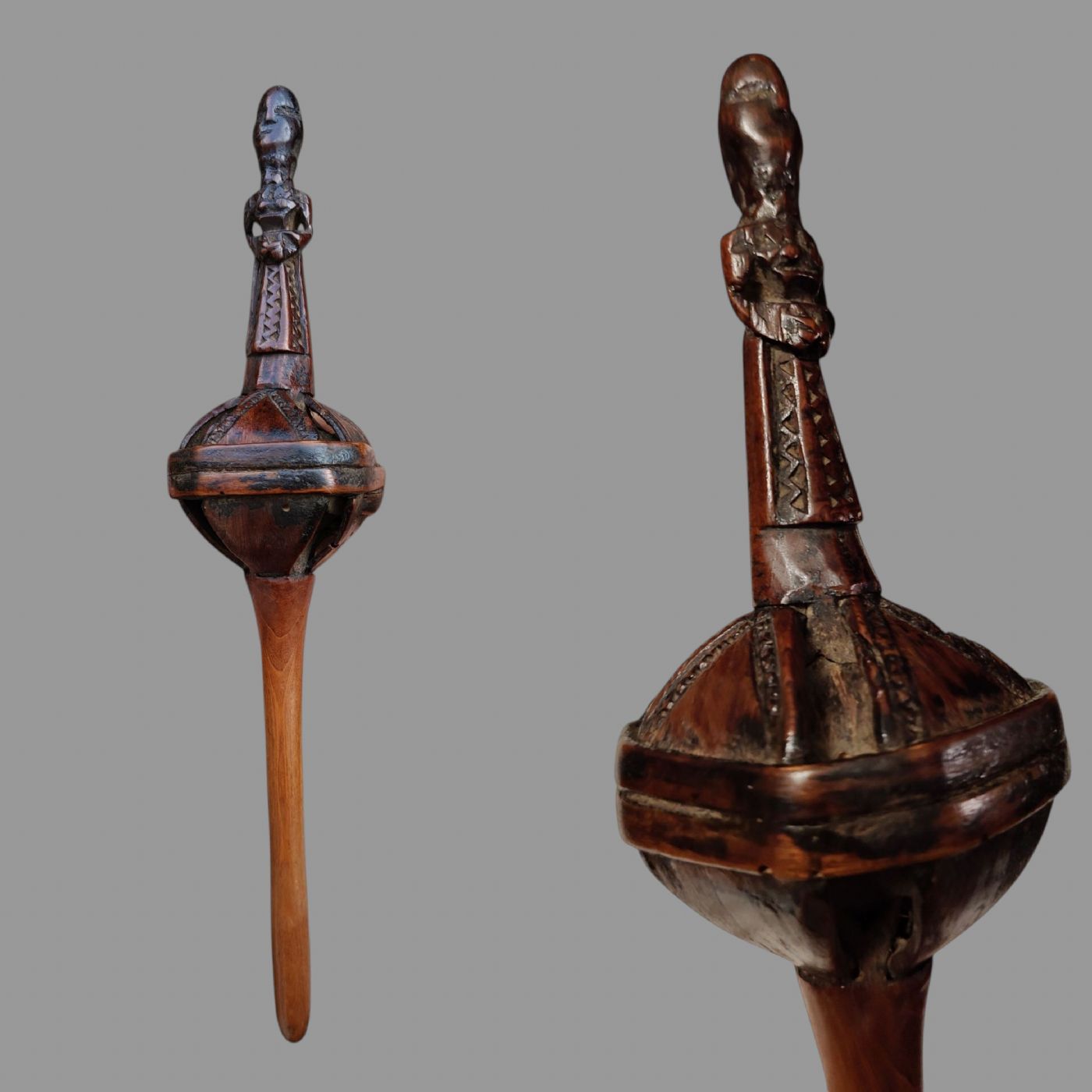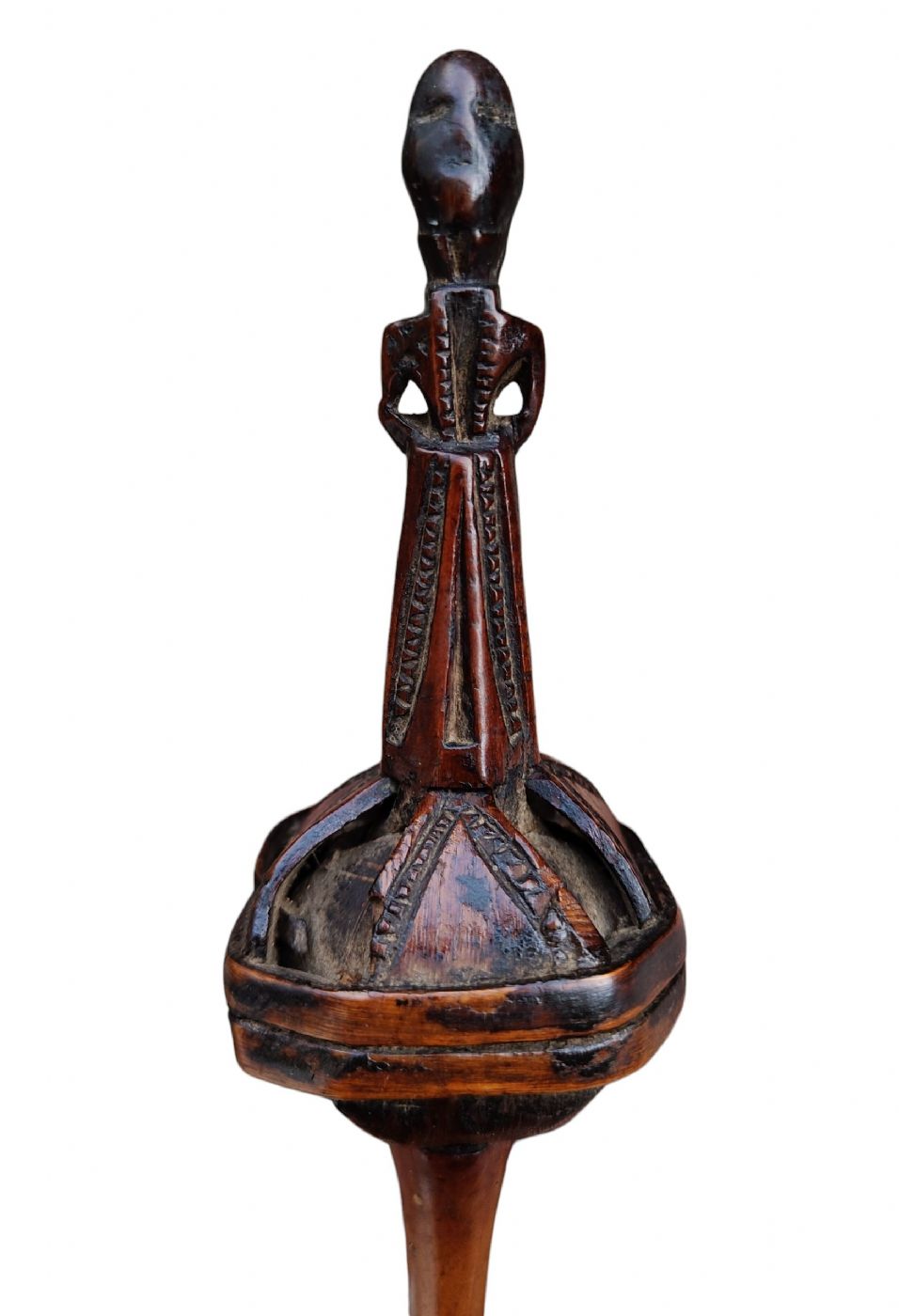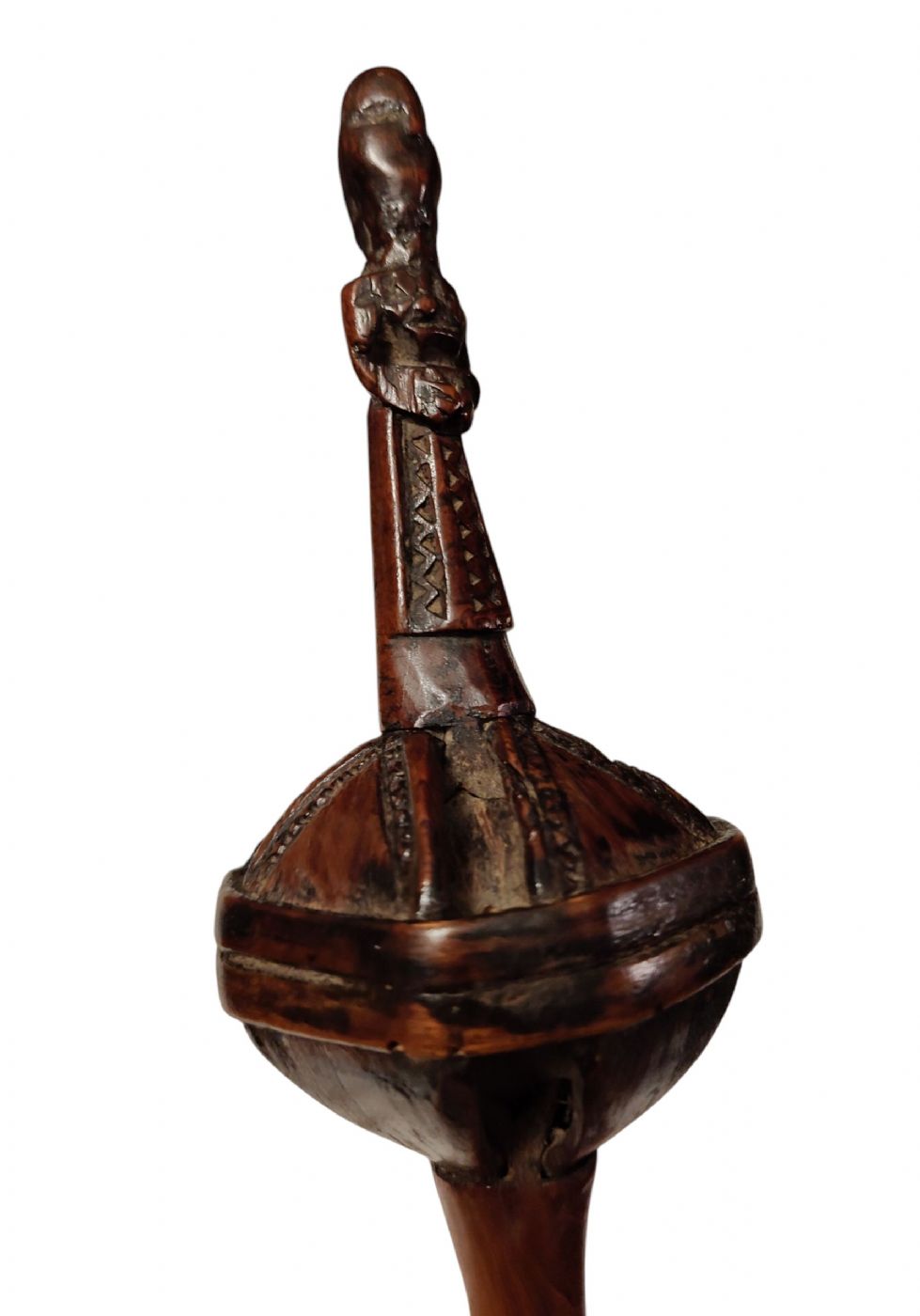 Le conocchia calabrese erano preziosi doni nuziali (o promesse di matrimonio) intagliate dai pastori per le promesse spose.Le più belle sono decorate con figure antropomorfe sapientemente intagliate.