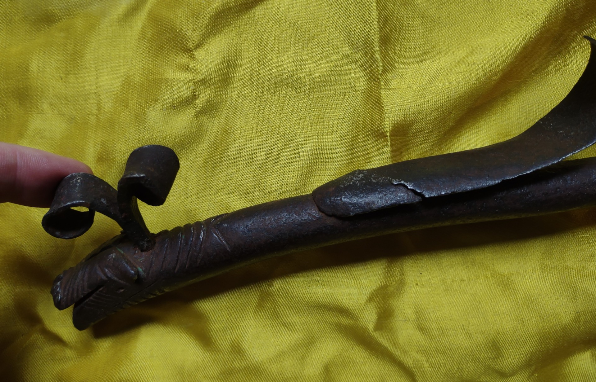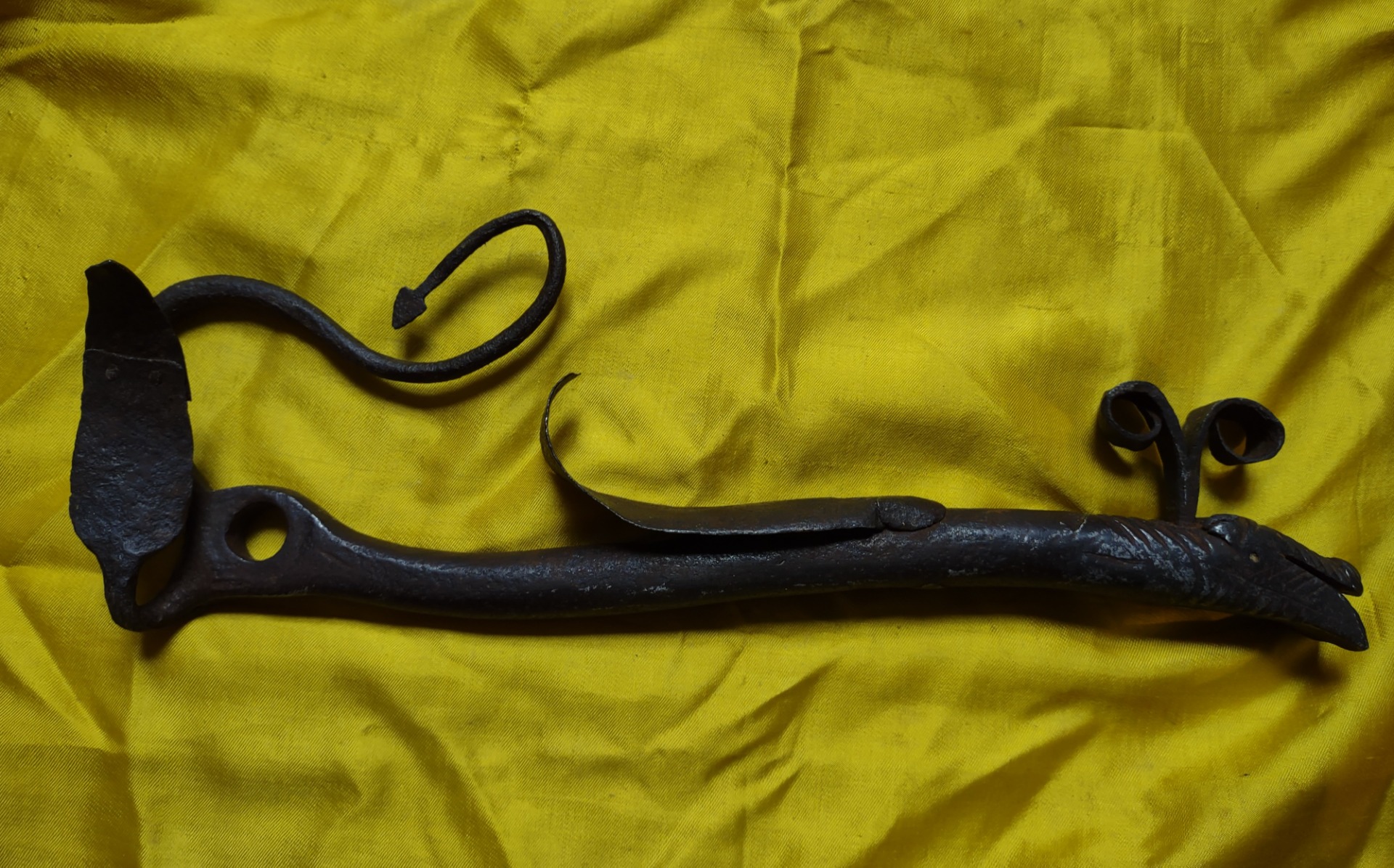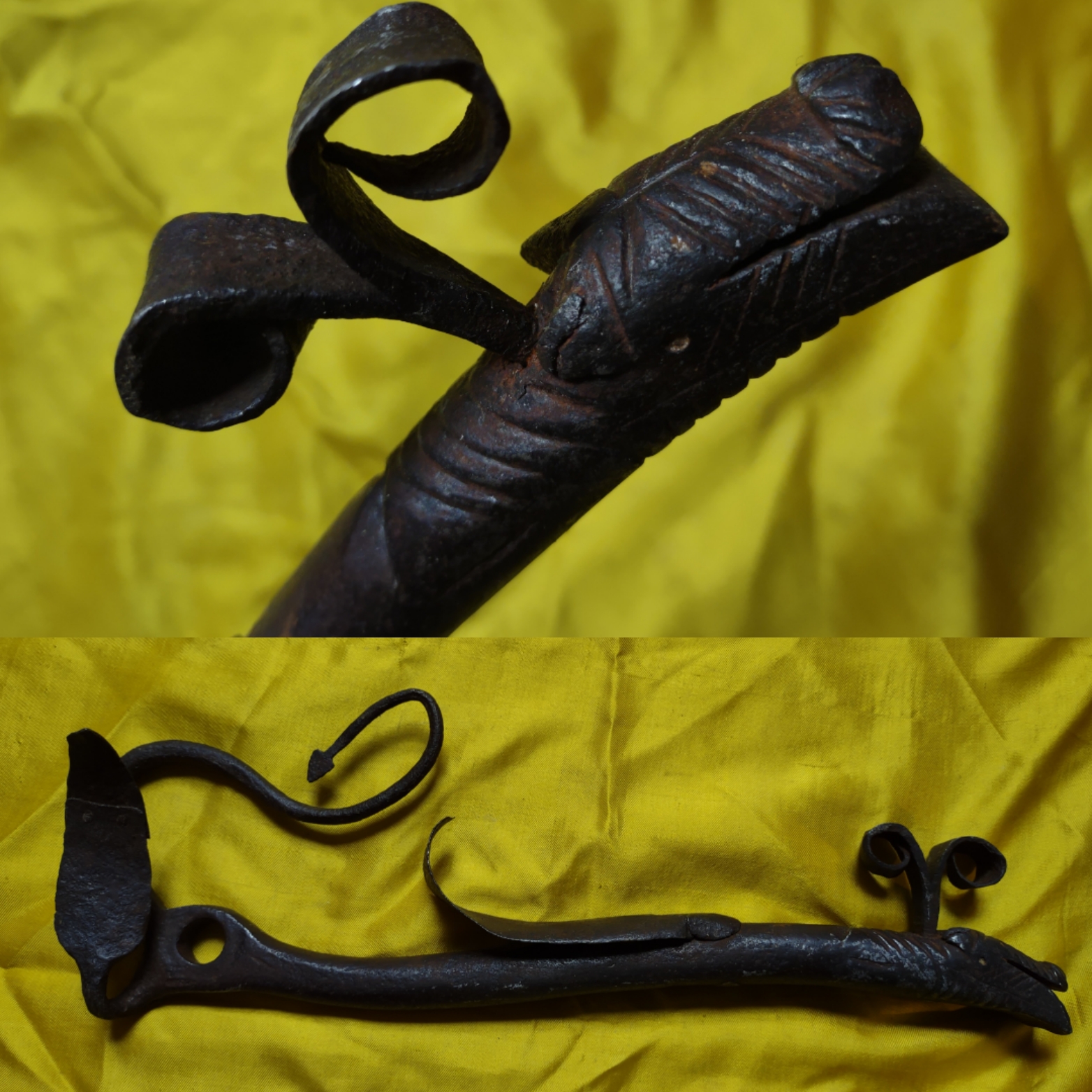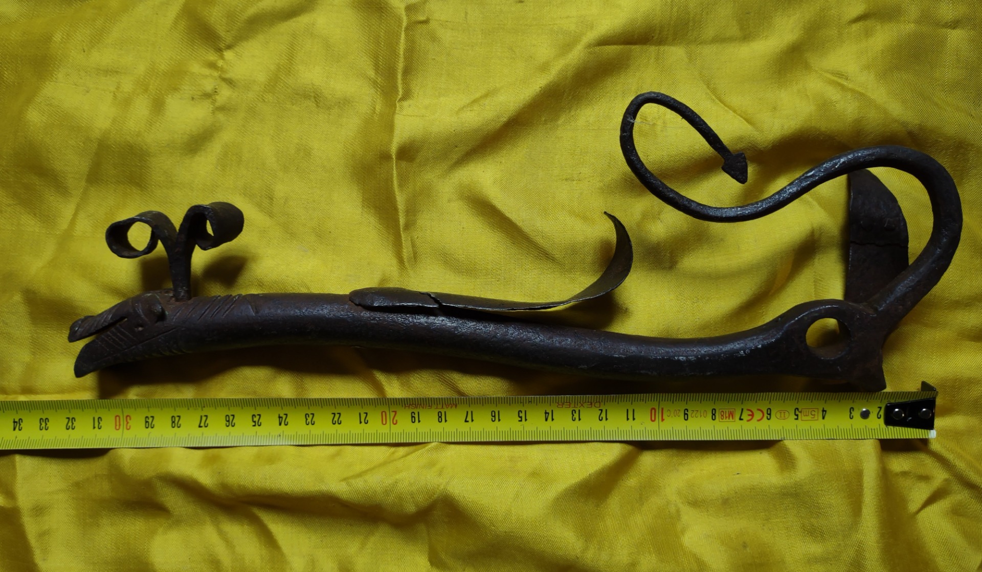 Saltarello zoomorfo in ferro forgiato, inciso ed applicato.Cm 32 Emilia Romagna XVIII sec.