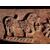 Sulla sinistra un leone (o un grosso cane) che tiene tra i denti un cestino, al centro ed a destra 2 vasi contenenti foglie, frutti e fiori.