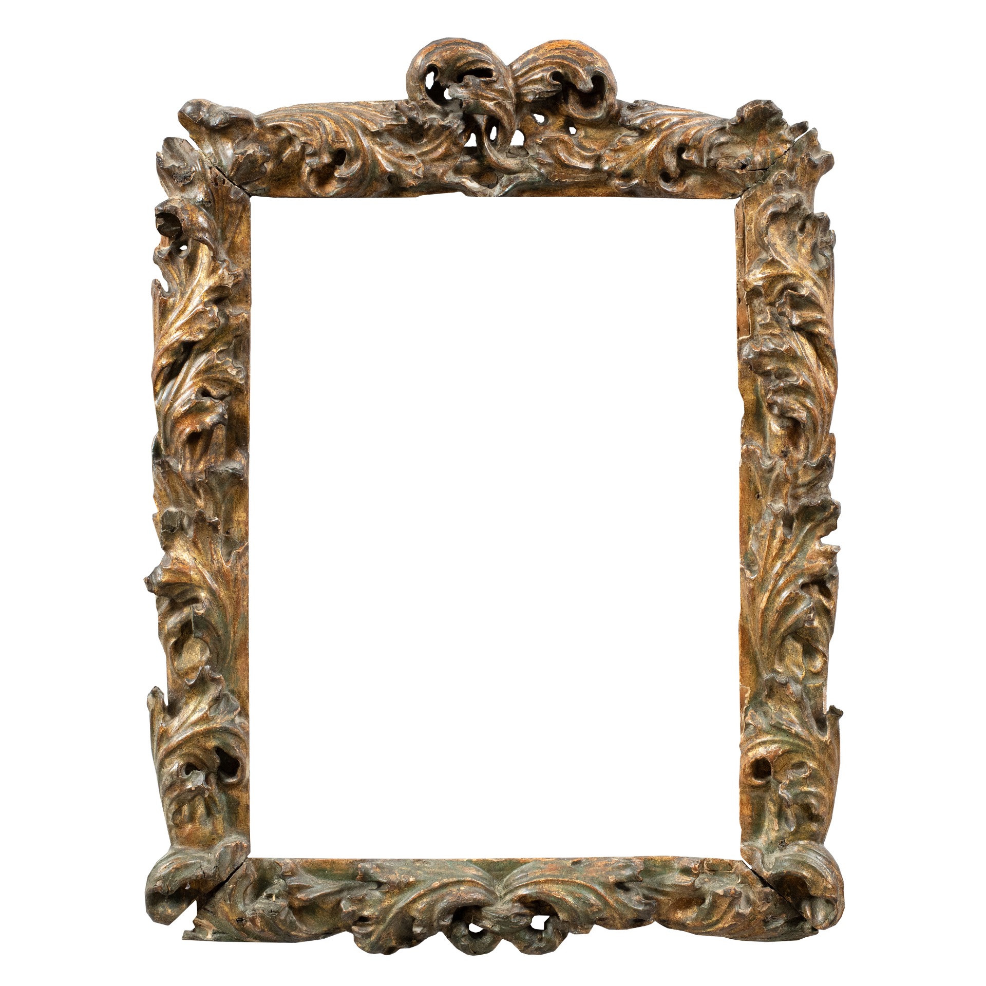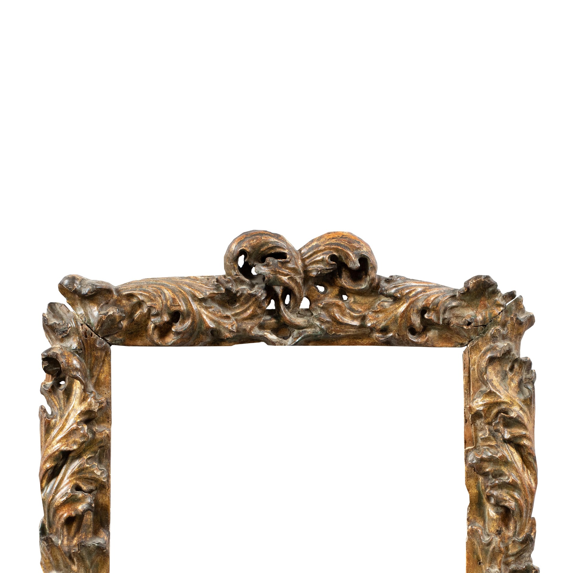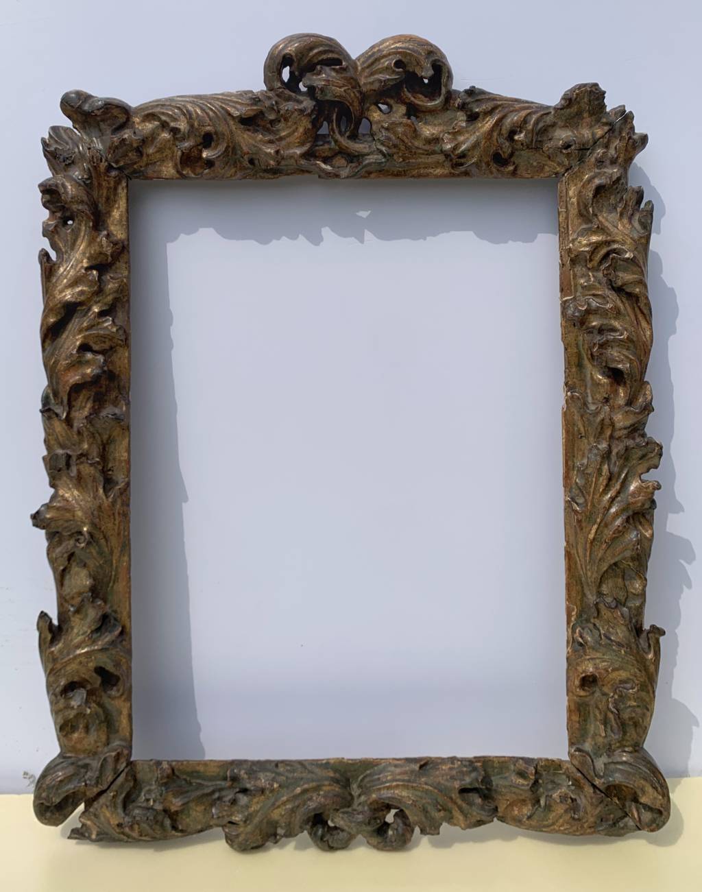 Cornice barocca in legno intagliato e laccato. Italia centrale, XVII secolo.