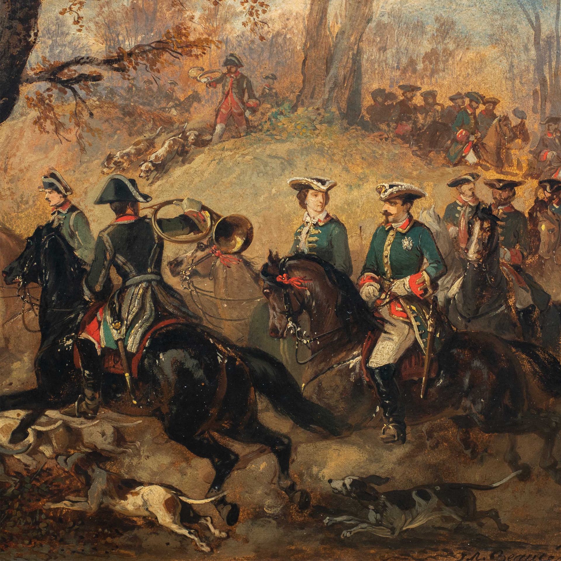 Jean Adolphe Boucé (1818 - 1875) - Caccia al cervo. 33.5 x 43 cm senza cornice, 38.5 x 48 cm con cornice. Olio su carta applicata su tela, in cornice coeva del XIX secolo. - Opera firmata e datata in basso dx: “J.A.BEAUCE - 1859”. Condition report: Tela foderata. Buono stato di conservazione della superficie pittorica. - Tutte le spedizioni in UE sono gratuite ed imballate professionalmente. - Ogni articolo viene venduto con certificato di autenticità con validità legale. - Ulteriori approfondimenti sul condition report sono disponibili su richiesta. - Viezzi Arte garantisce qualità e professionalità a prezzi competitivi, contattaci su info@viezziarte.it o via What’sApp al +39 3402841279. *Messaggio rivolto agli acquirenti non italiani: Tieni presente che quest'opera non ha ancora ottenuto il certificato di libera esportazione dall'Italia presso la Soprintendenza dei Beni Culturali. Questo documento attesta che l'opera non fa parte del patrimonio culturale italiano. Normalmente i tempi di rilascio degli attestati sono 40 giorni dalla data di appuntamento: La nuova normativa in vigore dal 2021 prevede, per importi dichiarati inferiori a 13.500€, tempi più brevi a discrezione della commissione di esperti. Tutti i costi di questa operazione sono inclusi.