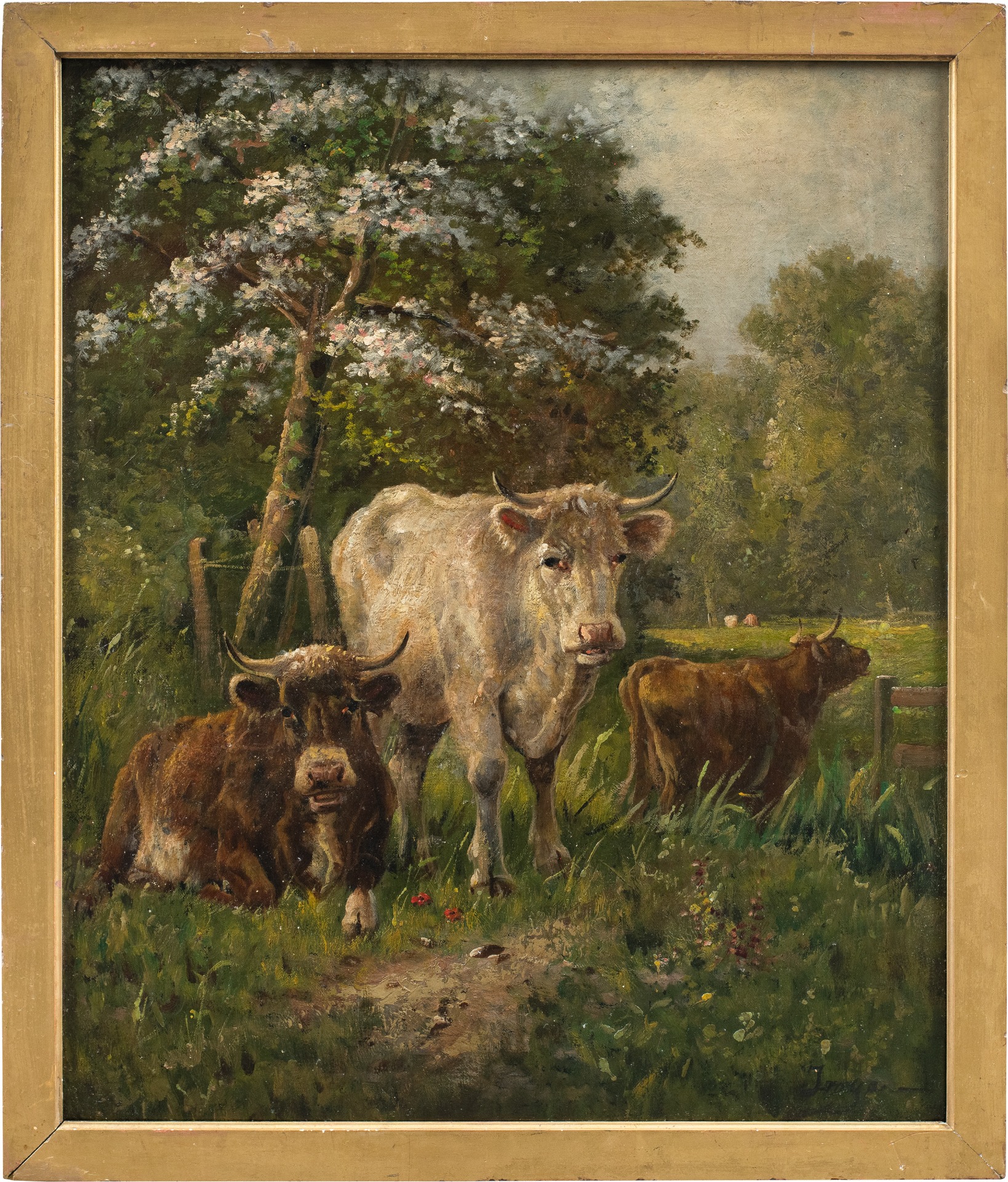Pittore europeo (fine XIX sec.) - Mucche al pascolo.