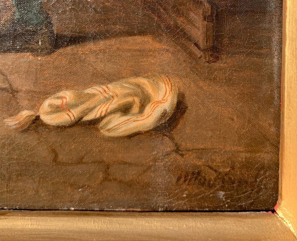 Dipinto antico ad olio su tela, in cornice in legno dorato.
