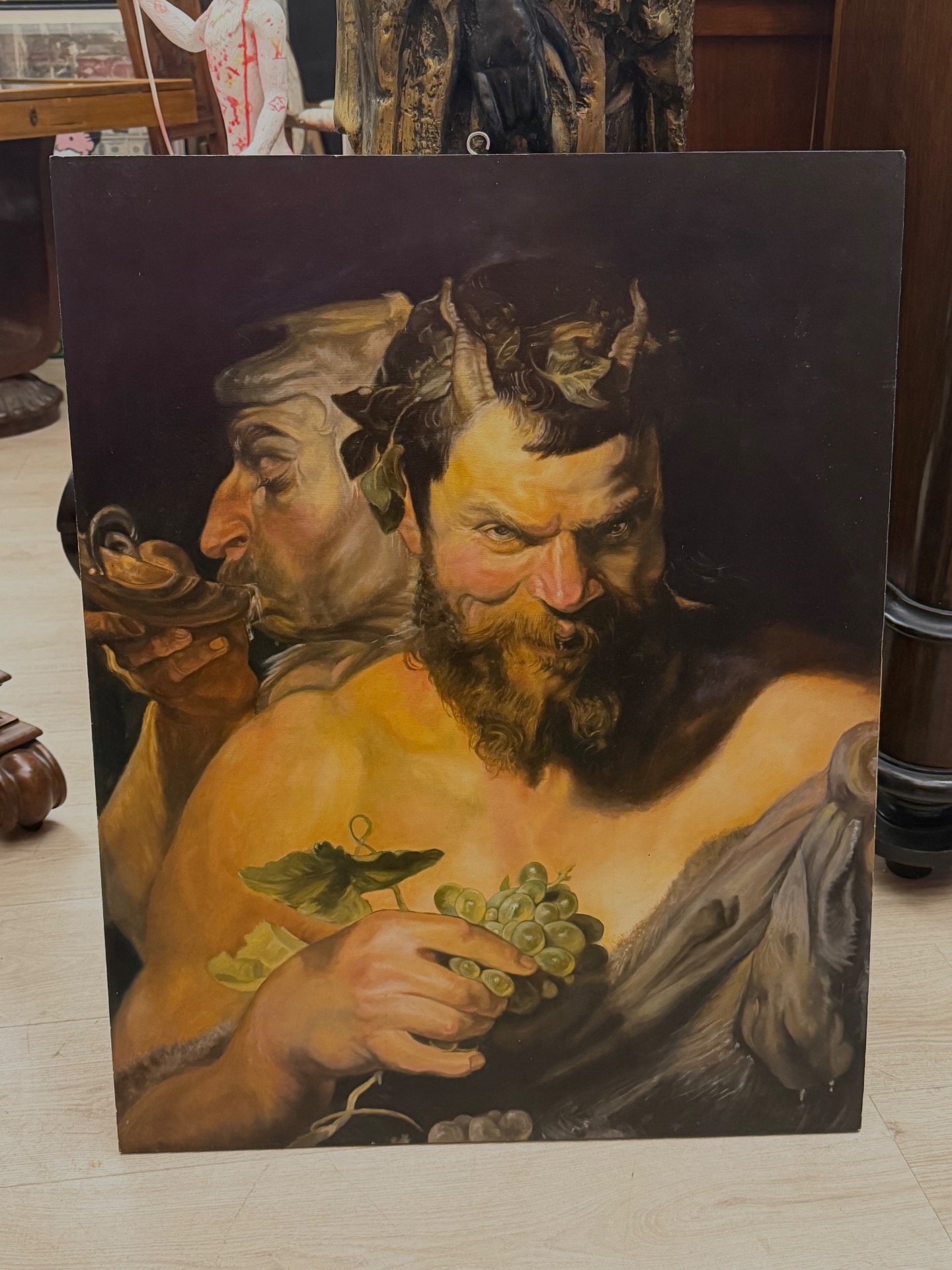 dipinto ad olio su tavola di satiri . Misure 80 x 60 cm circa