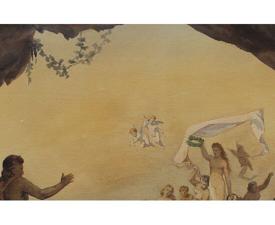 XIX secolo Trionfo di Galatea Acquerello su carta, cm 48 x 70 - Con cornice cm 74 x 95       Galatea, figlia di Nereo e Doride, è una delle 50 ninfe del mare, le Nereidi. Secondo la mitologia greaca Polifemo si invaghì di lei senza esserne ricambiato. A causa della collera e...