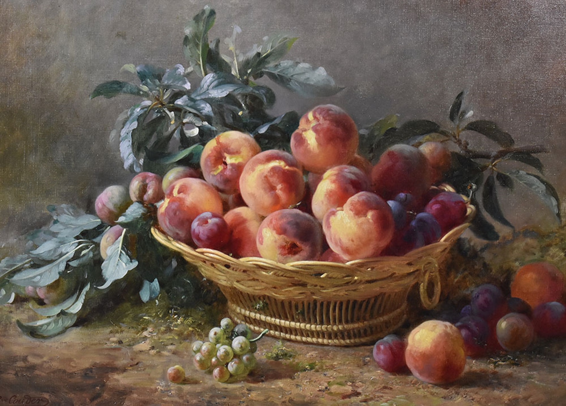 Dipinti antichi, natura morta di frutta, dell'Ottocento datata 1894 e firmata in basso a sinistra É. G. Couder,