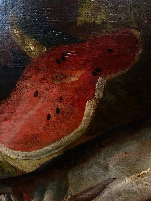 Interessante dipinto di grande qualità pittorica dell’800 con particolari che rendono la natura morta avere un effetto realistico. Dipinto su tavola di legno è in eccellenti condizioni generali, pronto per essere appeso, ottima la misura che è di cm.92 x 84 con cornice e cm.76 x 68 senza . Proviene da collezione privata milanese . Per qualsiasi informazione non esitate a contattarci. Si rilascia fattura o ricevuta fiscale allegando garanzia con foto. Pagamento bonifico bancario, spedizione con imballaggio professionale, spedizione Italia gratis.