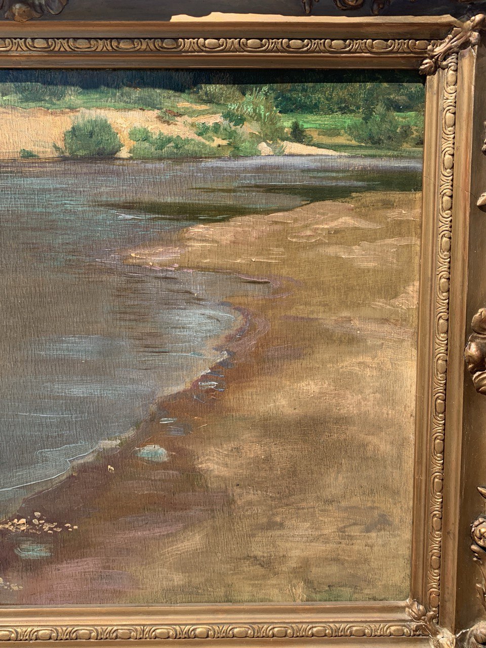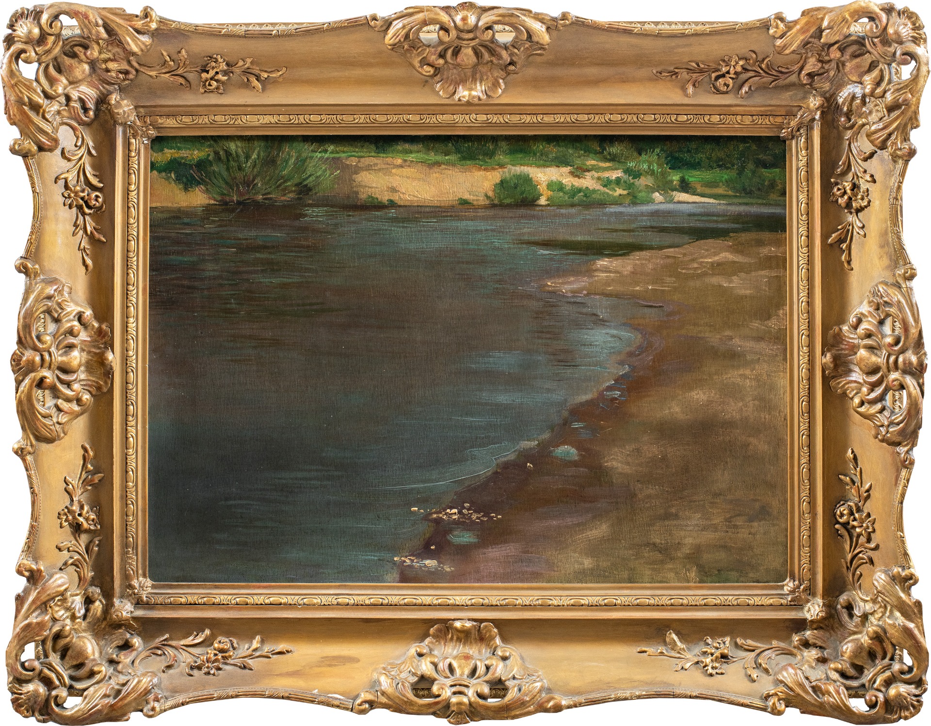 Pittore impressionista francese (XIX sec.) - Paesaggio con lago.