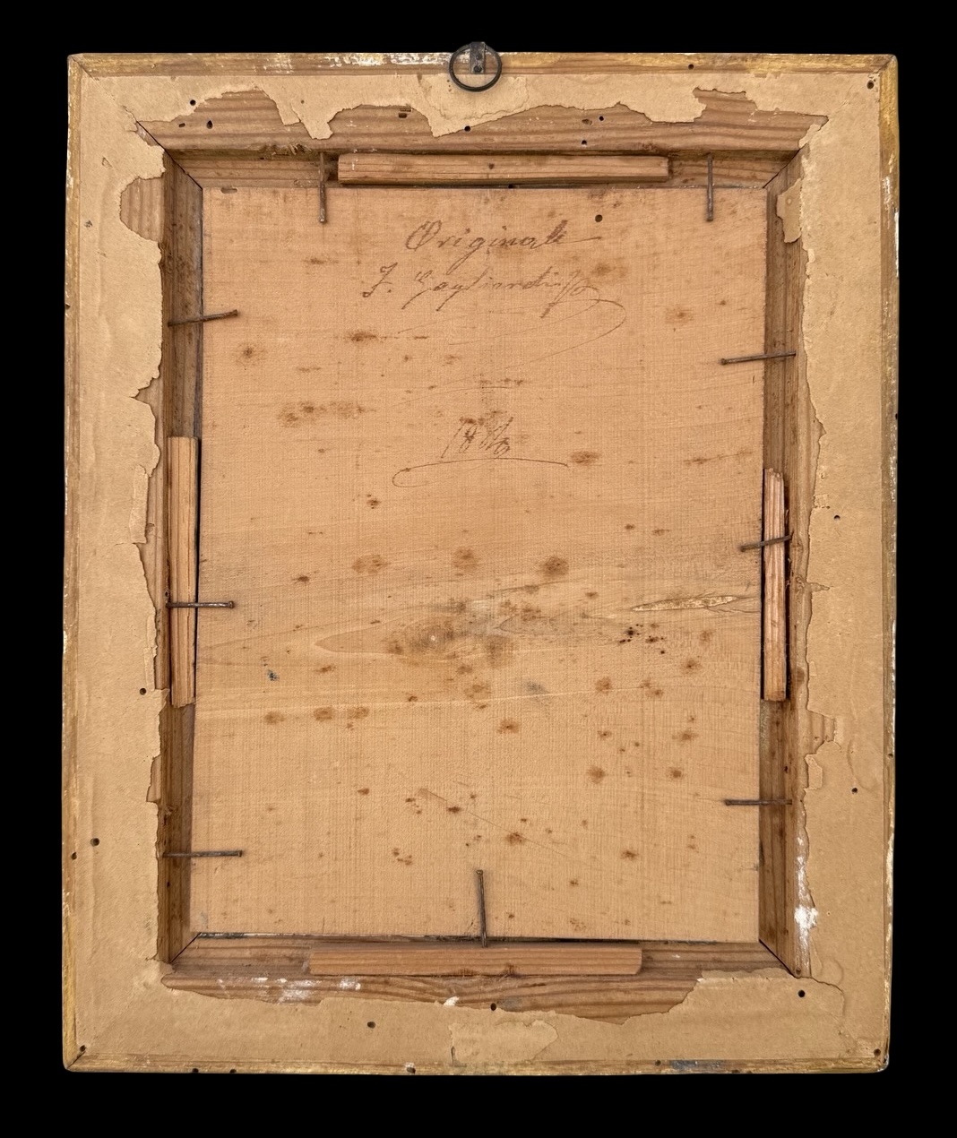 Dipinto olio su tavola raffigurante San Benedetto Giuseppe Labre (santo francescano pellegrino).iscrizioni sul retro con data ottocentesca.Cm 27x22.