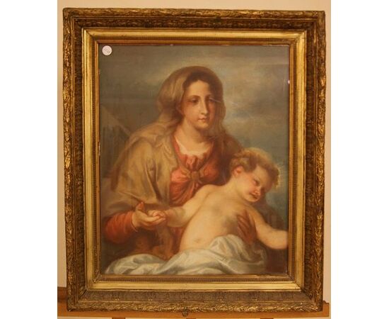 Pastello su cartone francese di metà 1800 raffigurante Maternità, Madonna con Bambino . Cornice coeva in foglia oro con intagli. Provenienza: Francia  Epoca: metà 1800 Dimensioni: 68x58 rif 13348 Per ogni tua altra curiosità visita il nostro sito :...