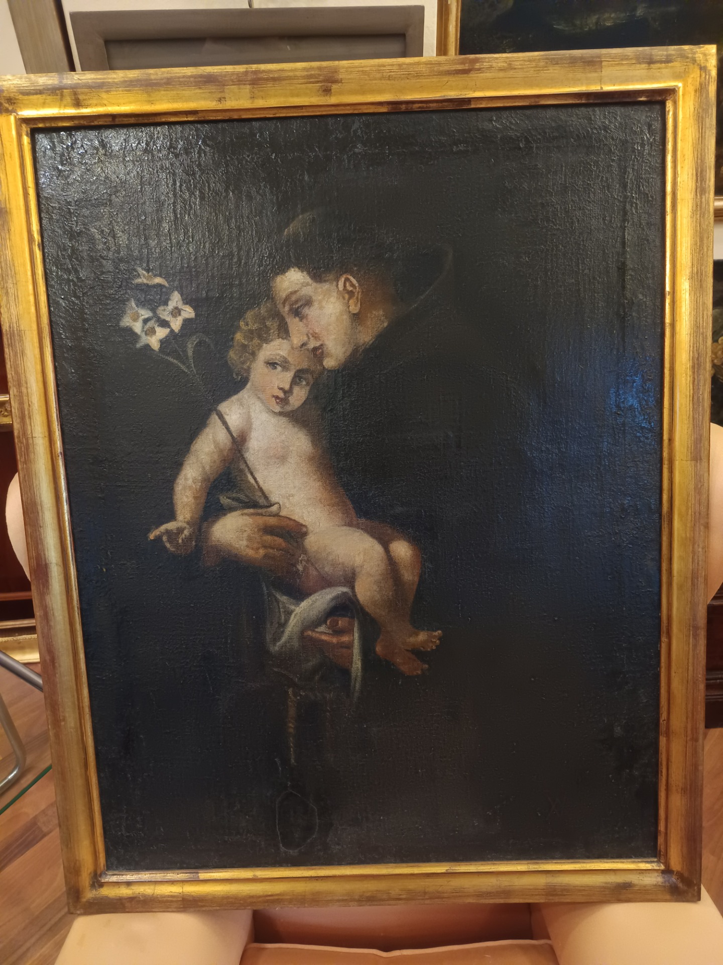 Dipinto ad olio su tela dei primi dell'800 rappresentante Sant'Antonio da Padova. Misure tela: cm 68 x 87