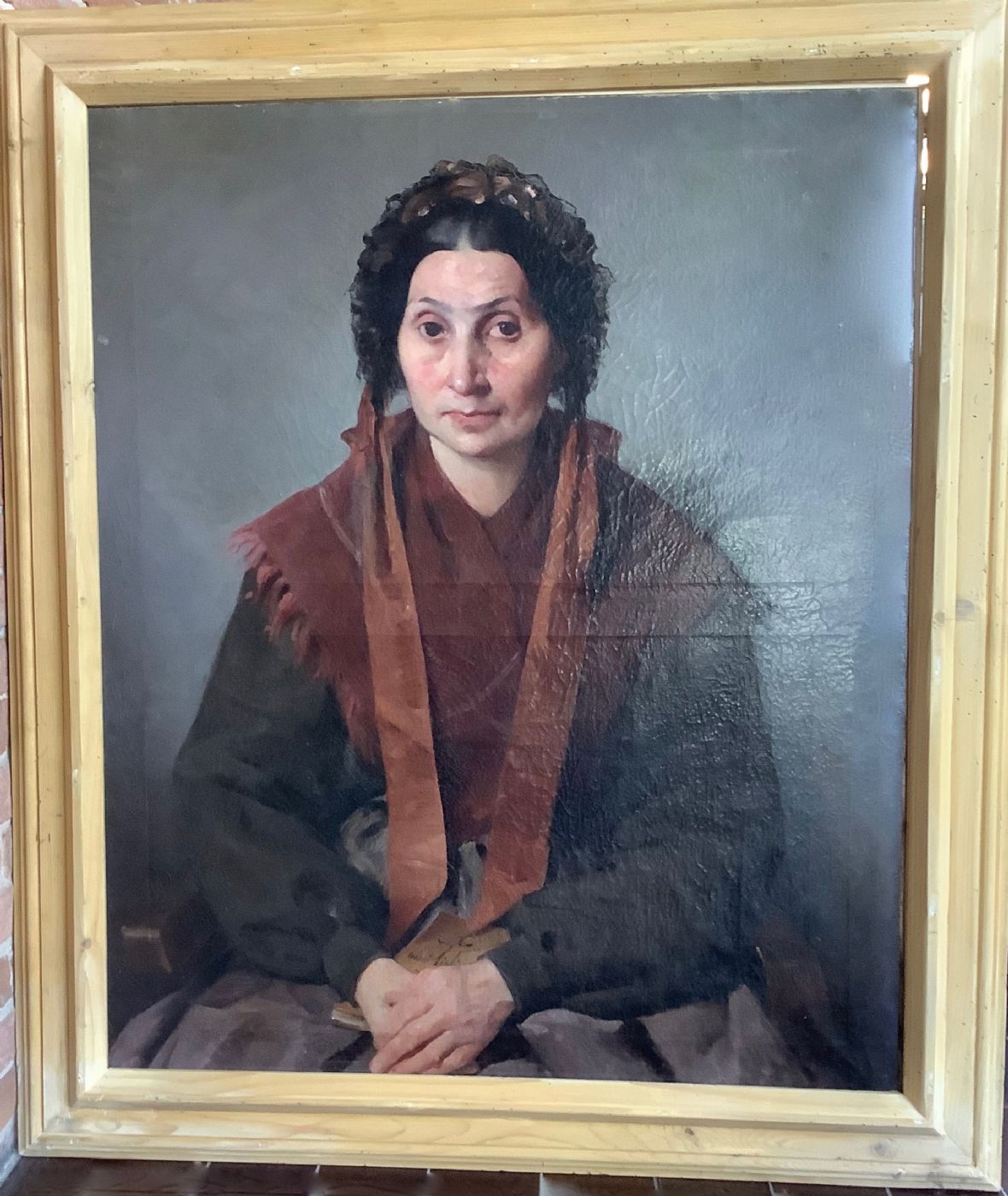 Olio su tela di cm.89 x 74, cornice di abete in patina naturale, coeva.