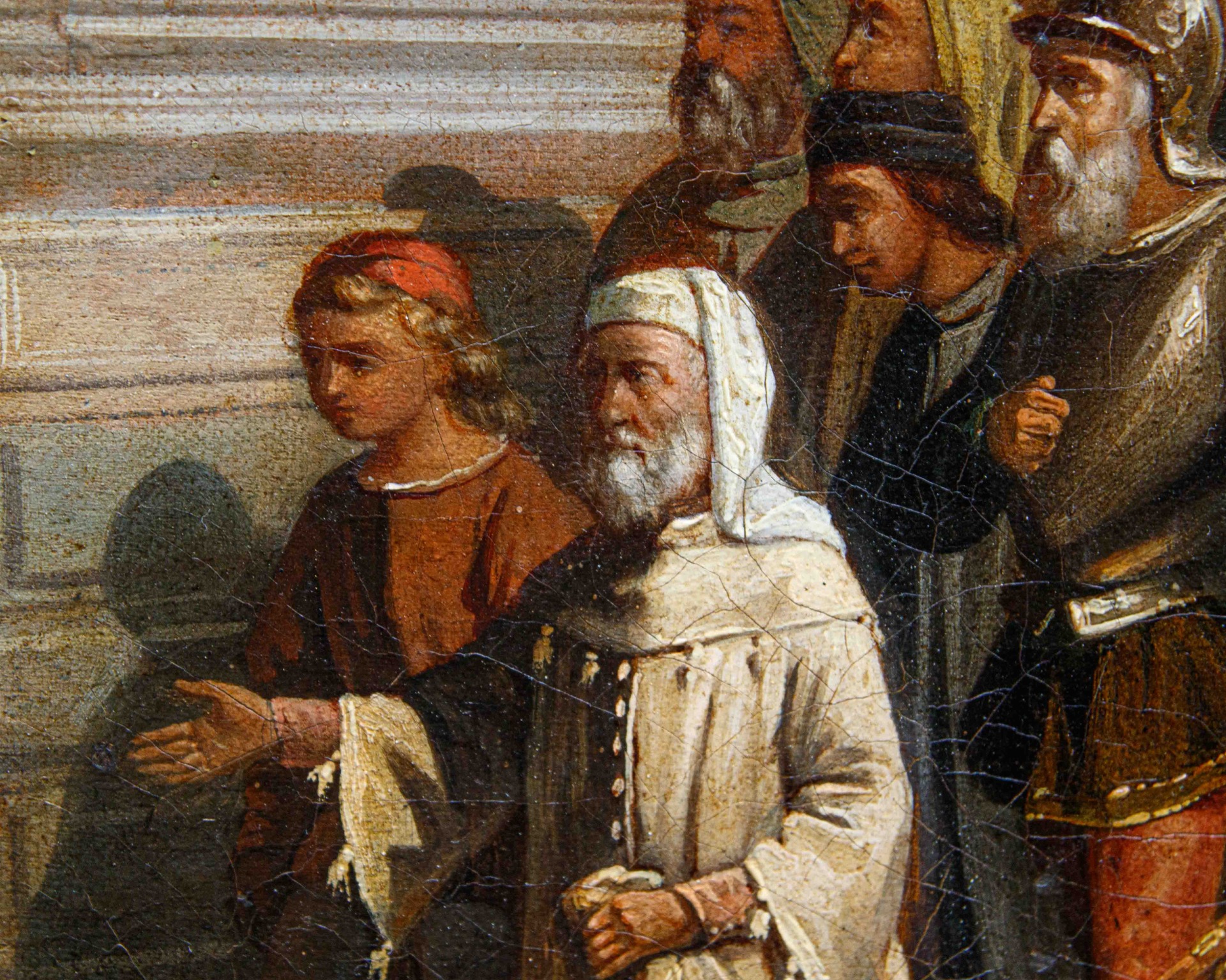 Questo dipinto ottocentesco raffigura l’ingresso trionfale dei fratelli Alboino e Cangrande della Scala, mettendo in scena un momento solenne e coreografico, costruito con l'immaginazione storicistica tipica del XIX secolo.