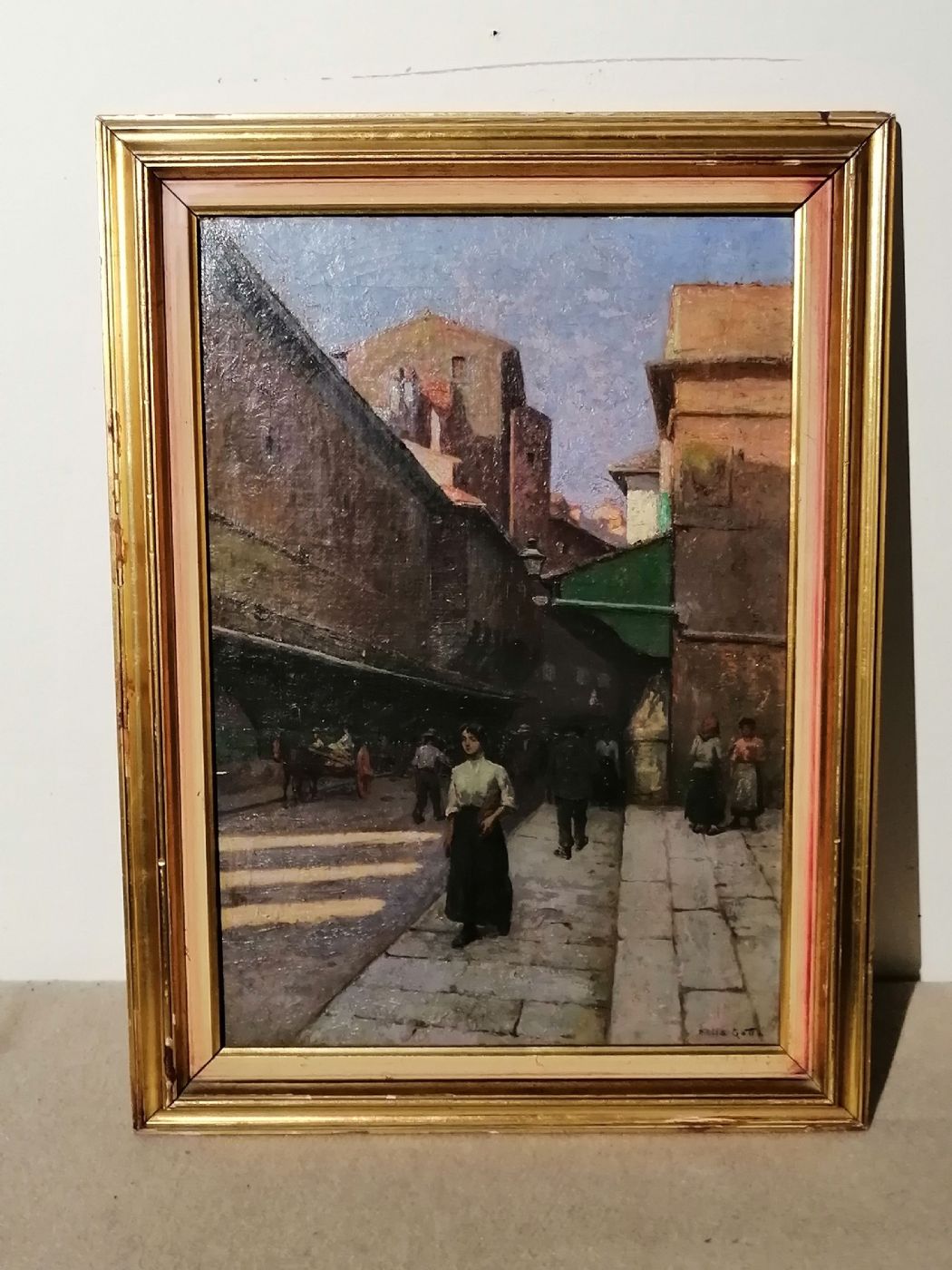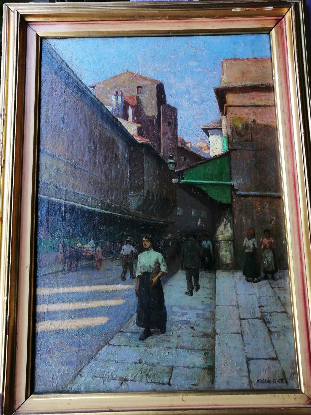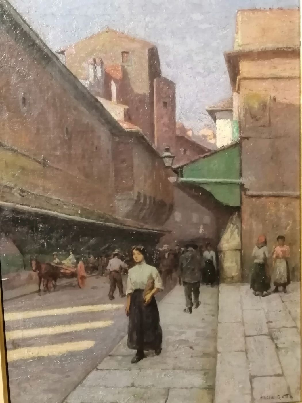 Anacleto Della Gatta (Sezze 1868 - Carmignano 1932) - Ponte Vecchio fine '800 - Dipinto firmato