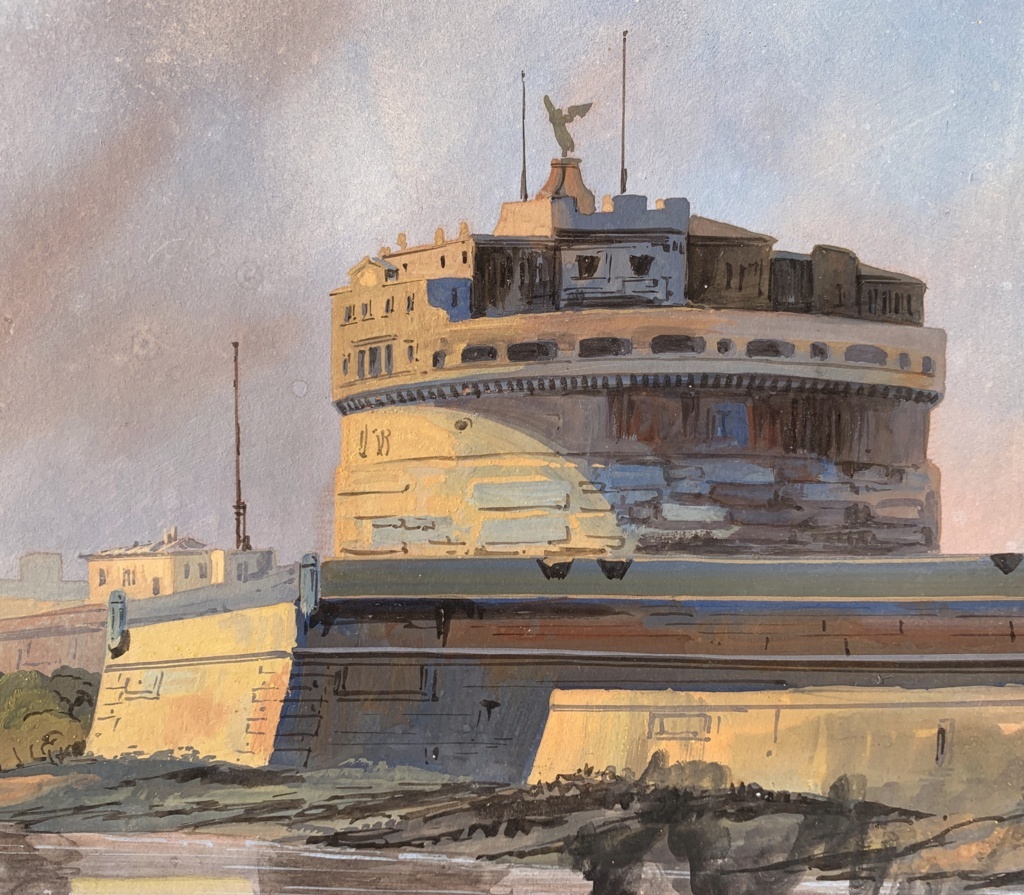 Seguace di Ippolito Caffi (Belluno 1809 - Lissa 1866) - Roma, veduta del Tevere verso Castel Sant’Angelo.