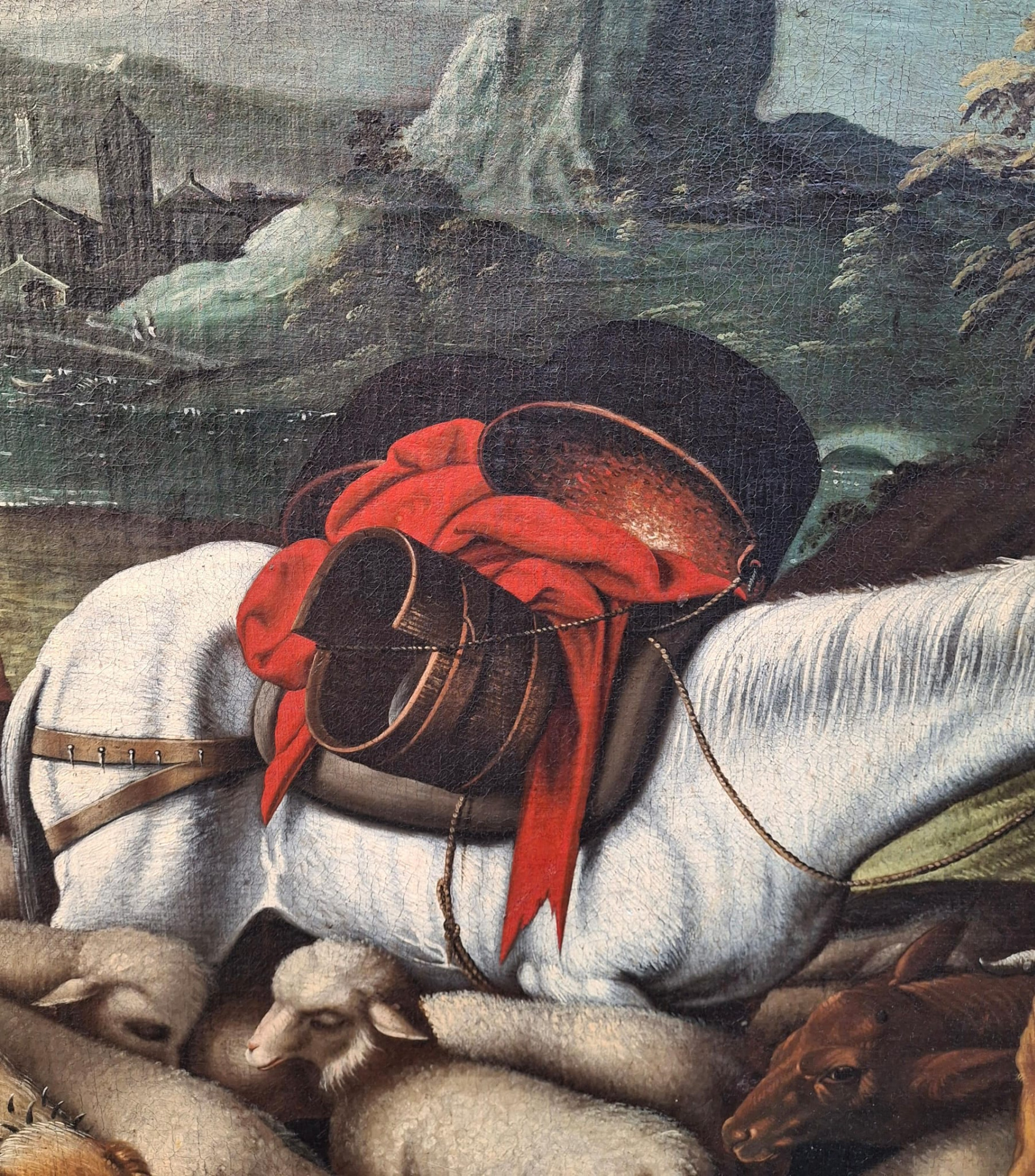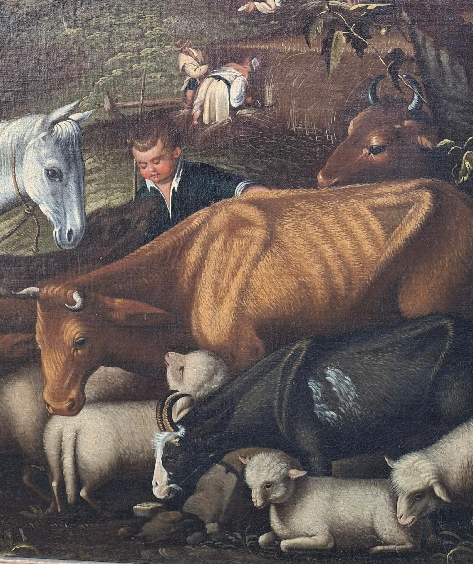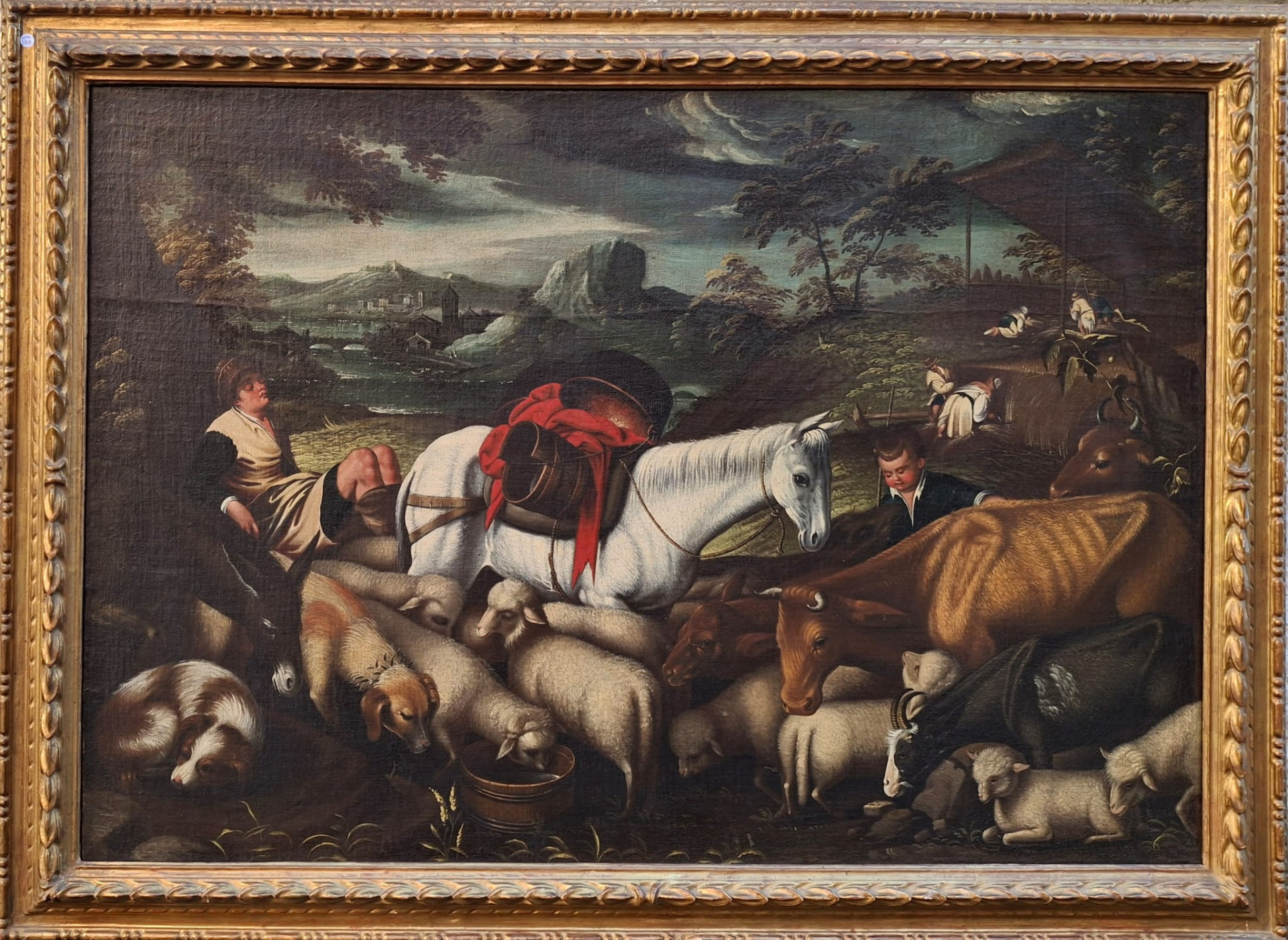 Jacopo Da Ponte, detto Jacopo Bassano (1515-1592) bottega di, Scena pastorale, fine XVI secolo, olio su tela, misure 81x117 cm, con cornice 99x135 cm. http://www.oldpaintingsonline.com