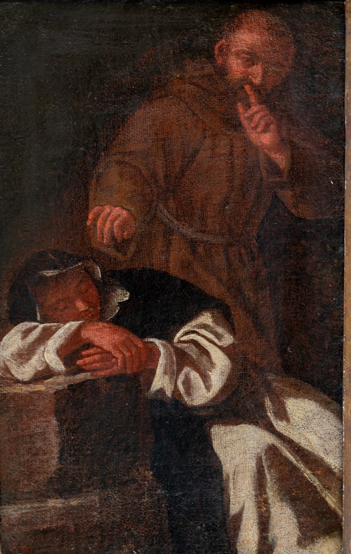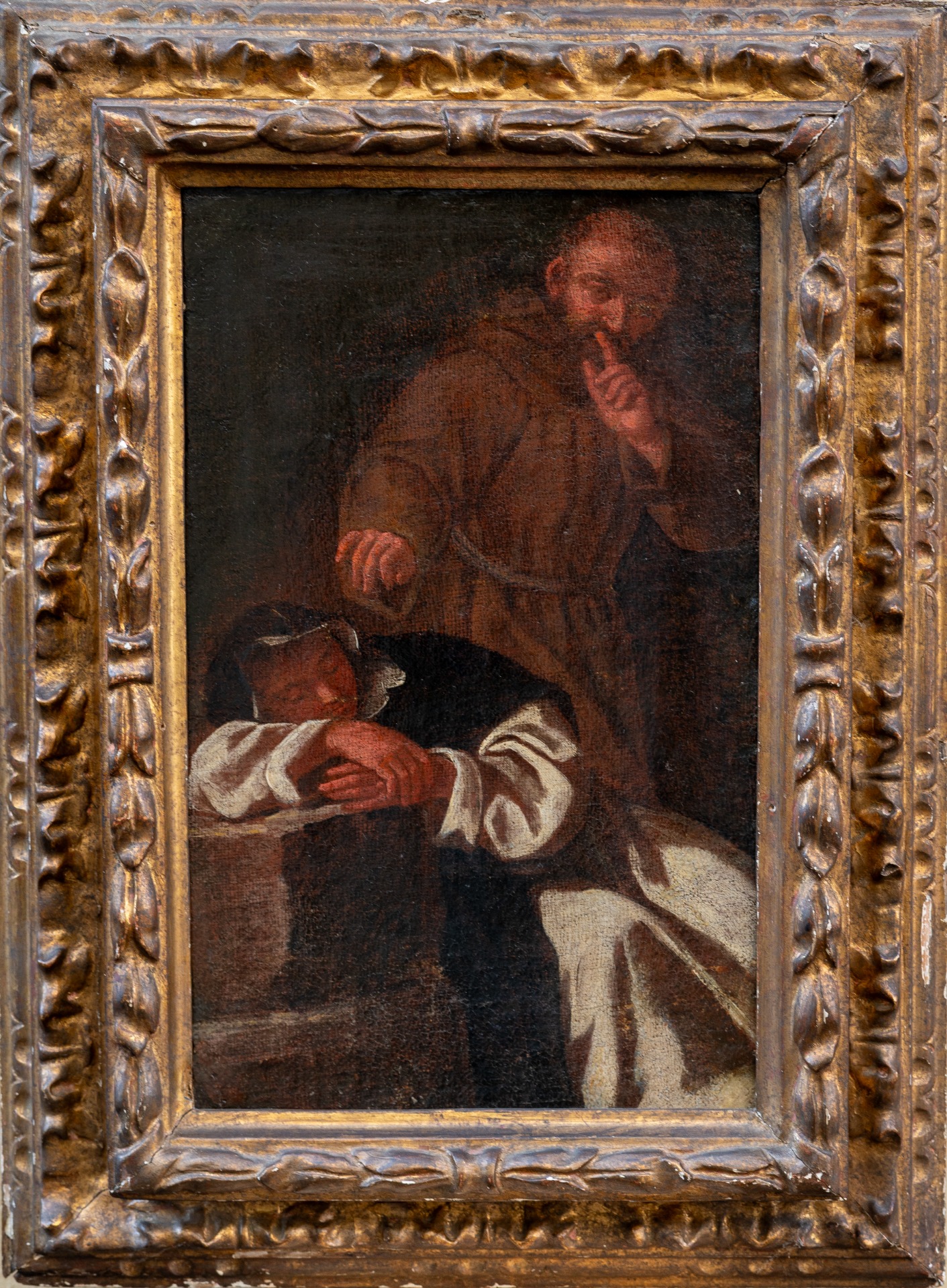 Dipinto con francescano e domenicano - XVII secolo - olio su tela