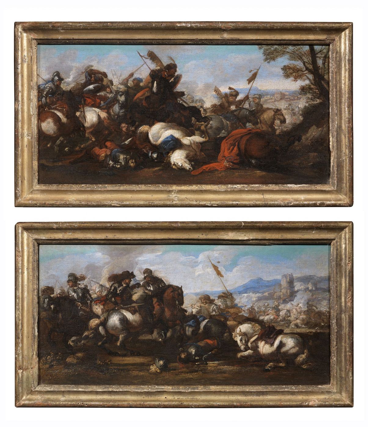 Jacques Courtois Il Borgognone (1621-1676) - Coppia di battaglie