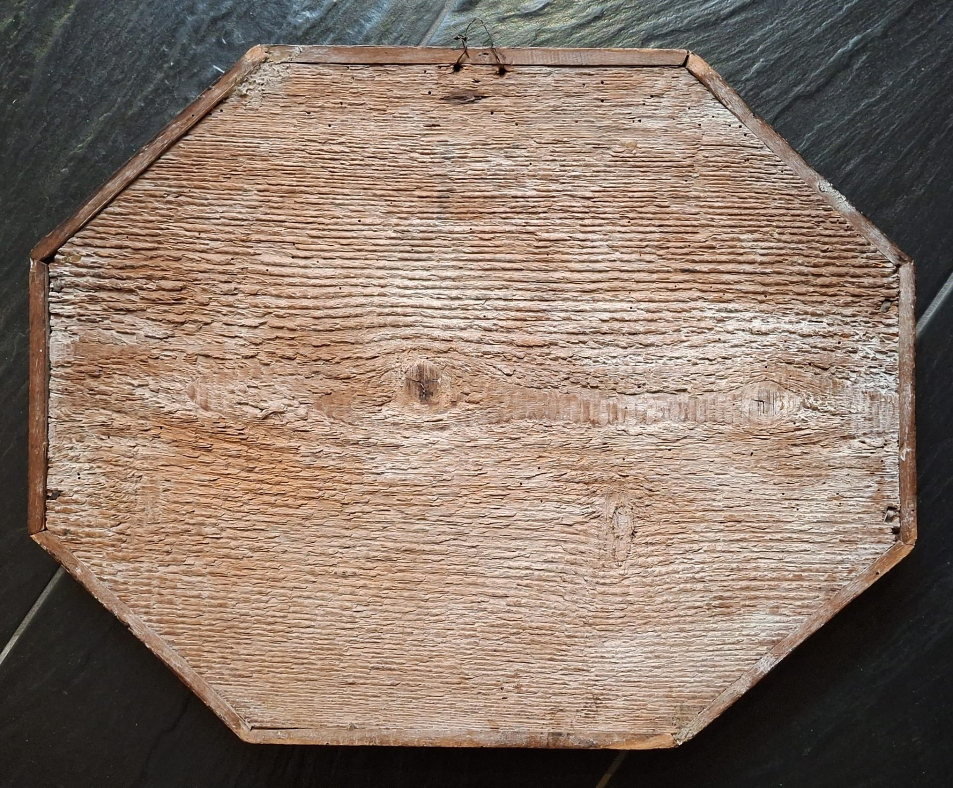 Natura morta ottagonale, scuola toscana dell'inizio del XVII secolo, olio su tavola, un pezzo unico con la cornice ebanizzata, misure 34x44 cm.