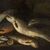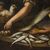 Scuola emiliana, XVII secolo, Coppia di pescatori con nature morte di pesci