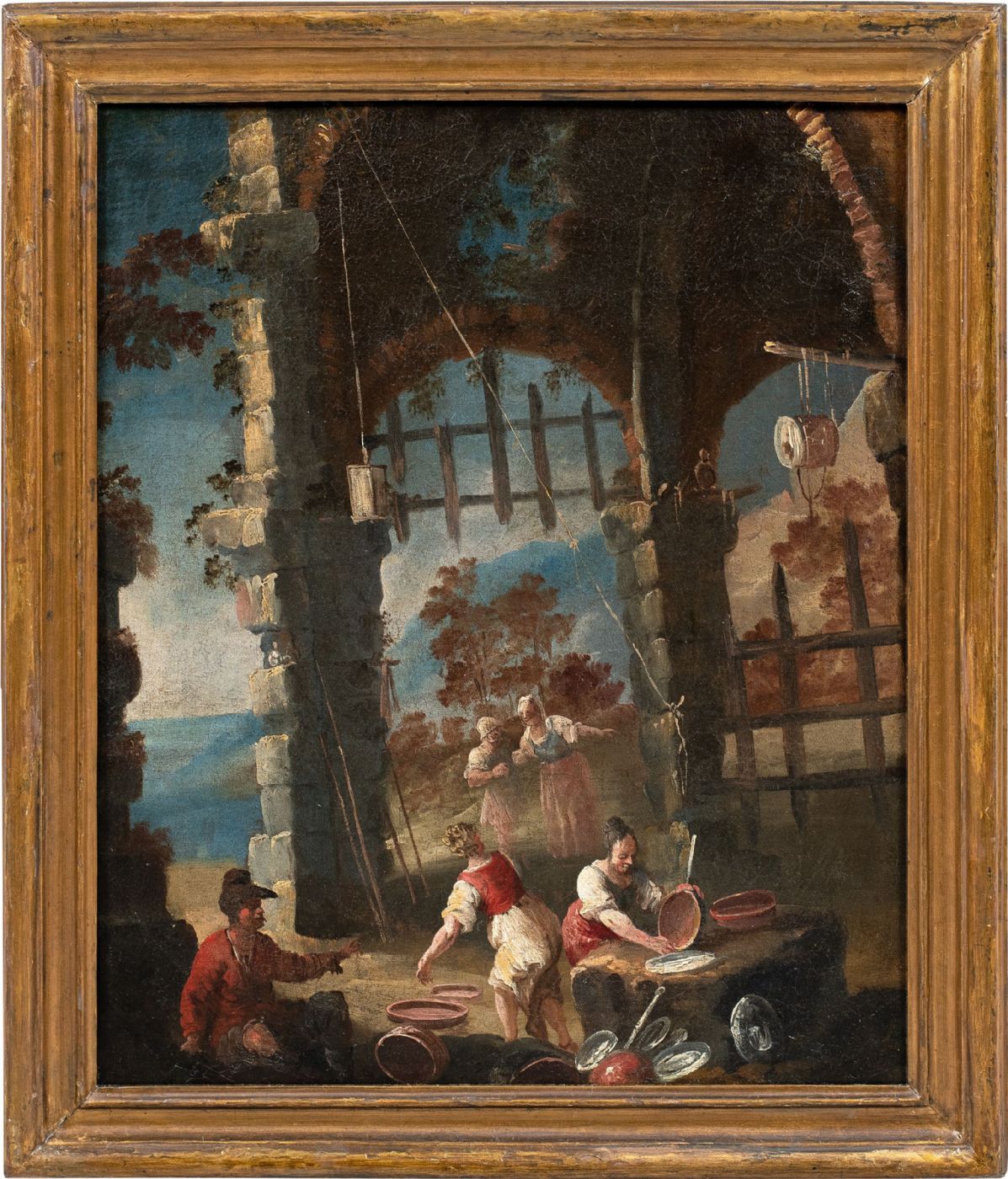 Matteo Ghidoni, detto Matteo dei Pitocchi (Firenze 1626 - Padova 1700) - Scena di genere con lavapiatti.