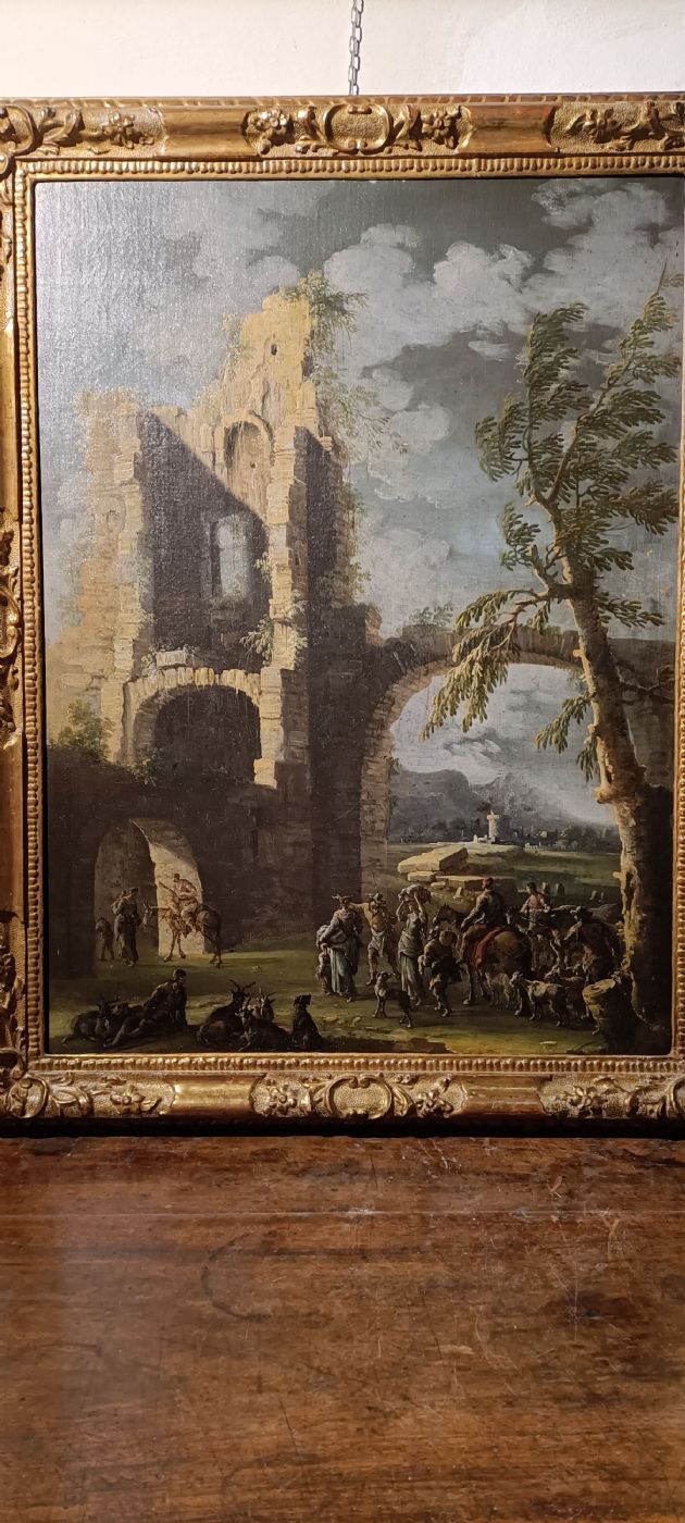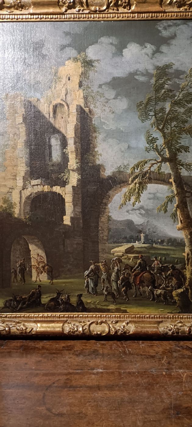 Paesaggio con figure e rovine - Gennaro Greco (Napoli 1665-1714) - Fine '600 - olio su tela
