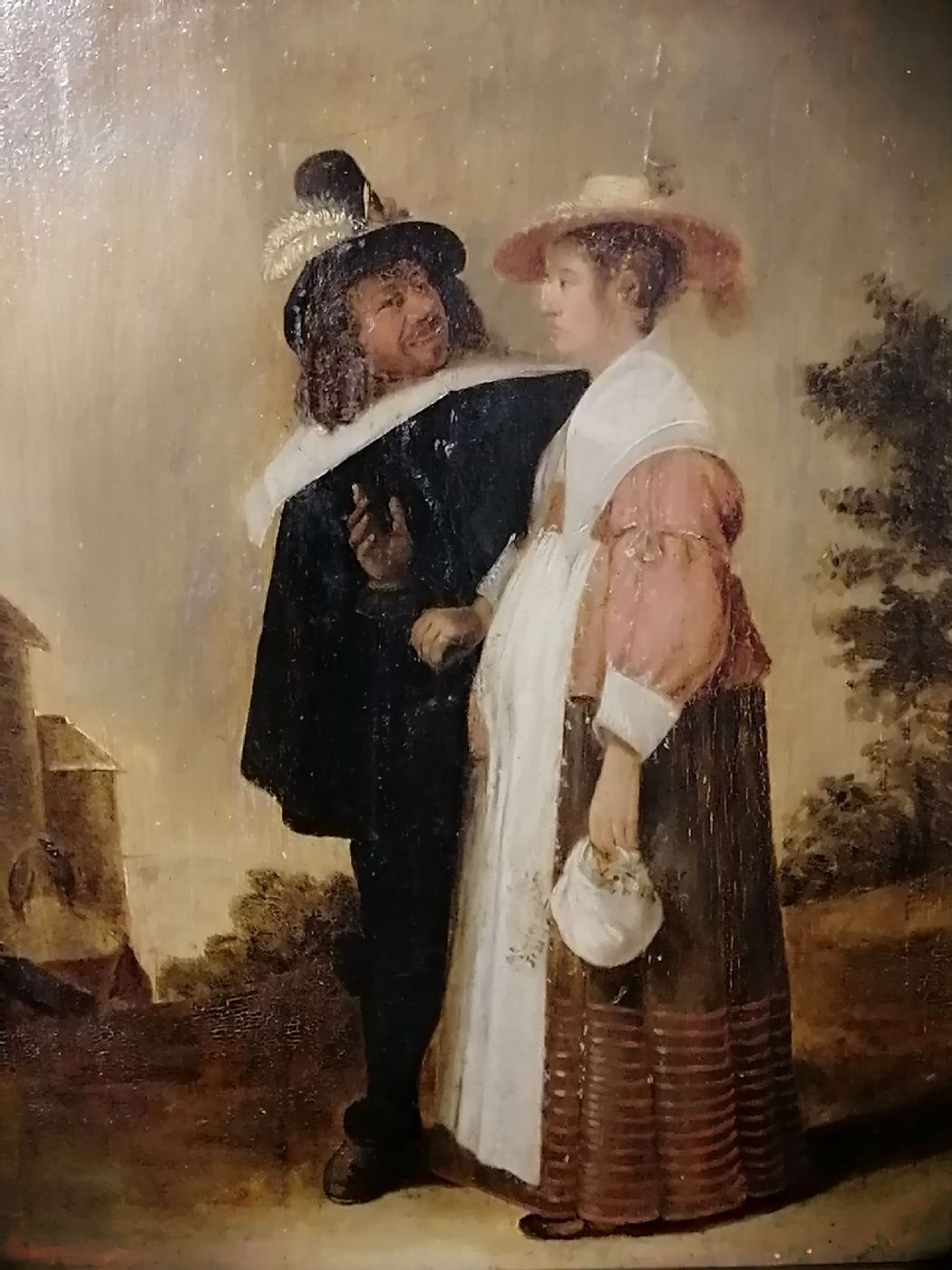 Tavola ritraente coppia che conversa nel paesaggio - David Teniers il giovane (attr.) (Anversa, 15 dicembre 1610 – Bruxelles, 25 aprile 1690) -