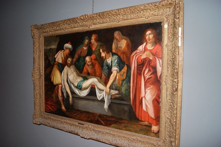 Olio su tavola del 1600, fiammingo, raffigurante la "Deposizione di Gesù" la discesa dalla croce di Cristo accompagnato da Giuseppe di Arimatea, San Giovanni evangelista, la Madonna ritratta nell'atto dello svenimento accompagnata da altre due Marie.